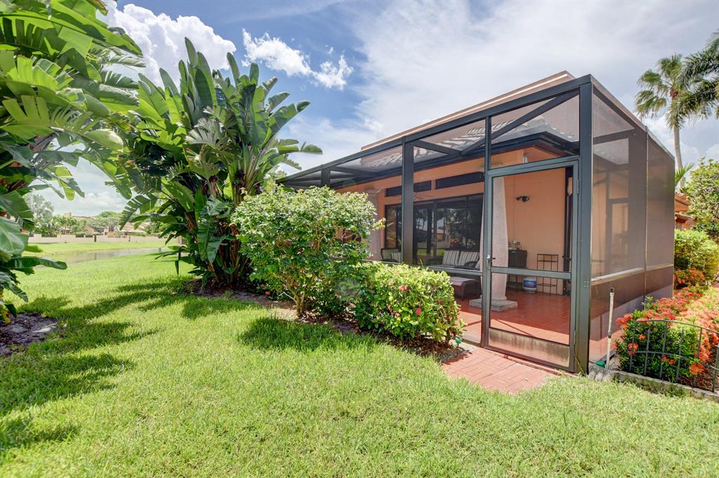 Desirable expanded Capri, one story open floor plan home surrounded by beautiful tropical well kept landscaping and a huge screened patio with partial lake view for FL living at it's best. Popcorn has been removed from all ceilings. Neutral stone tile throughout most of home. Second bedroom has upscale carpeting. Designer quality renovated 2nd bath. Large oversize master bathroom. Kitchen boasts stainless top of the line appliances, new oversize W&D. A/C - 6yrs. Barrel roof tiles around house(slope) replace 2019. House has skylights and is light and bright 6,000 WATT GENERATOR THAT IS CONNECTED TO HOUSE. . Membership optional.