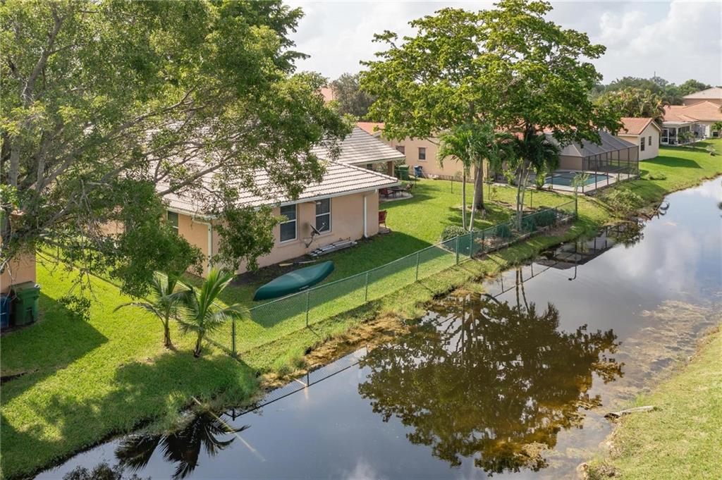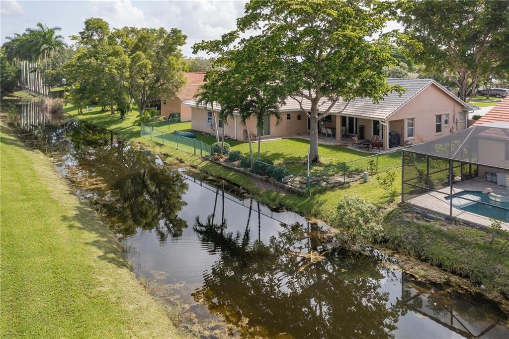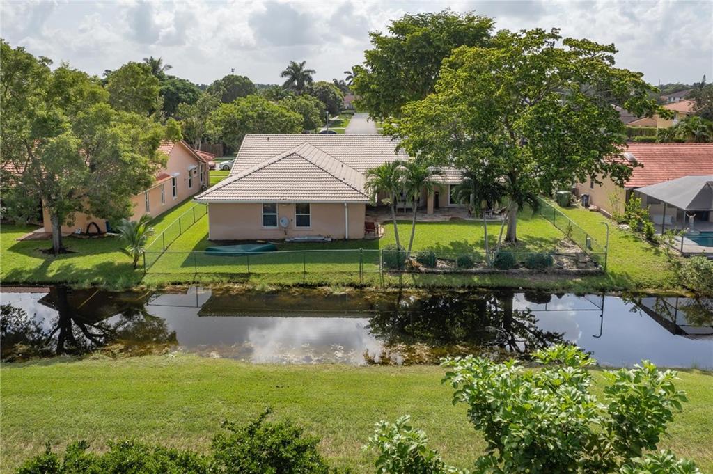 4/2 single family split-floor plan home in Weston. Lot has mature shade trees in front & back is completely fenced in & provides over 80 ft of waterfront access. Back patio has full overhang with 2 new outdoor fans to allow for relaxation with the family and has plenty of room for a pool. Master bathroom is fully remodeled with glass enclosed shower and soaking, jacuzzi style tub and second cabana style bathroom has extra long, double sink vanity. Entire home allows for tremendous amount of natural light in all living areas and layout is great for entertaining. Community has playground, tennis courts, basketball courts and minimal annual association dues making it a great option for families. Elementary/Middle Schools are within walking distance and shopping is just minutes away.