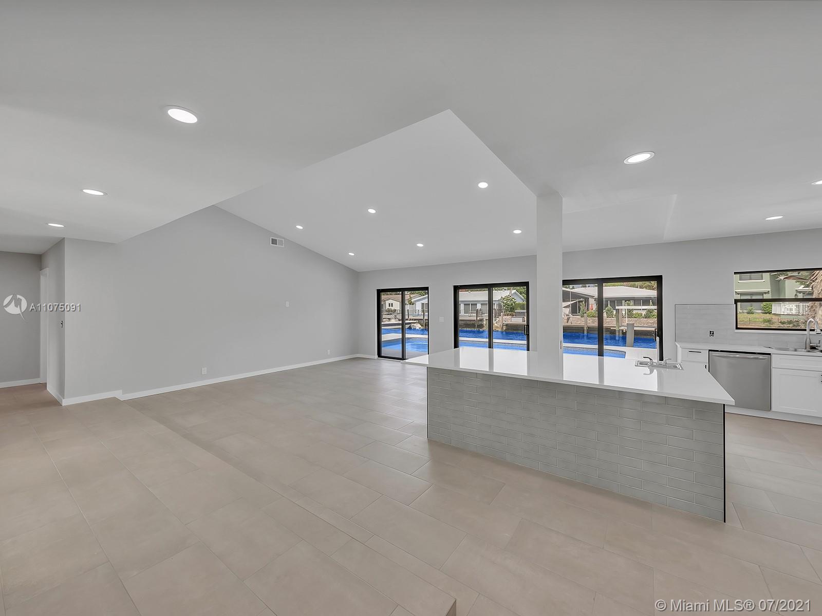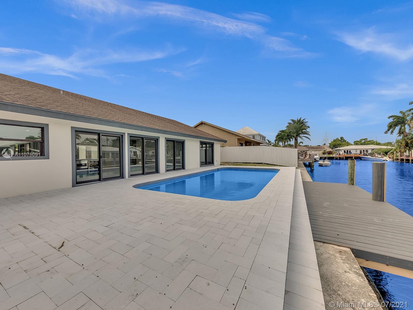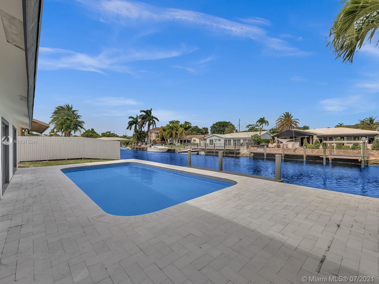 A MUST SEE!!! Water front property. Completely gutted and remodeled. Located on a luxurious deep waterfront canal. Ocean access . Beautiful large swimming pool newly resurfaced . Double door front entry. 4 bedrooms (2 masters), 3 full bathrooms. Very spacious, open living area with full pool and water views. Brand new fully remodeled kitchen including wine cooler. high impact windows. Added bonus: just a short drive to the beach and popular restaurants.
