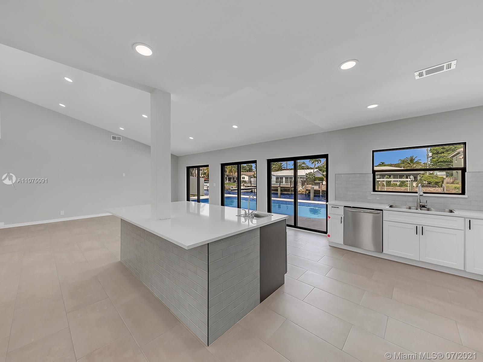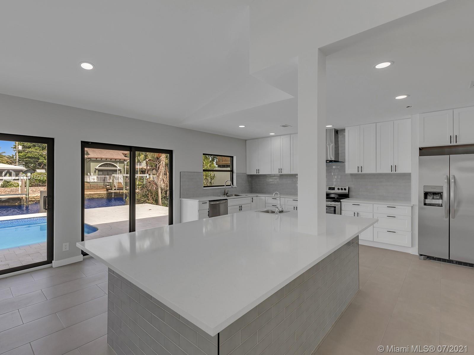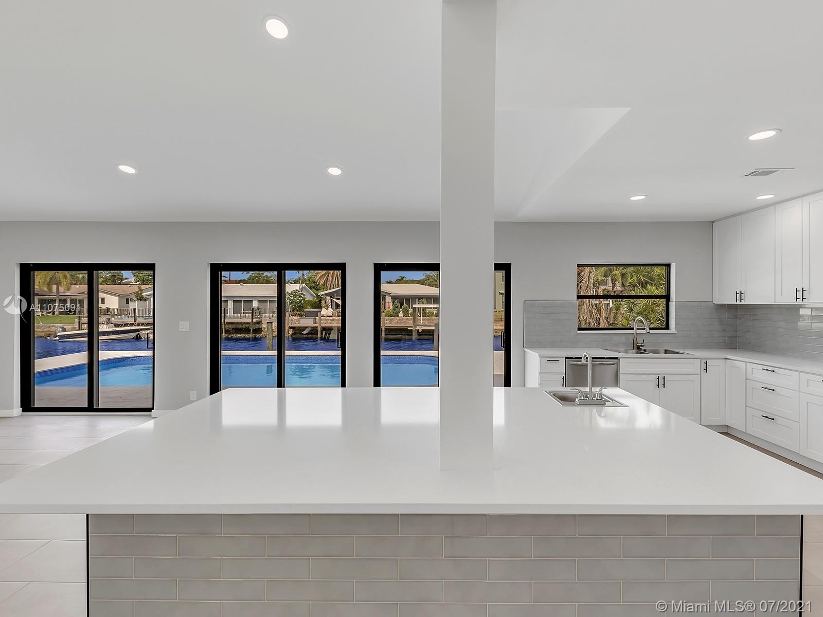 A MUST SEE!!! Water front property. Completely gutted and remodeled. Located on a luxurious deep waterfront canal. Ocean access . Beautiful large swimming pool newly resurfaced . Double door front entry. 4 bedrooms (2 masters), 3 full bathrooms. Very spacious, open living area with full pool and water views. Brand new fully remodeled kitchen including wine cooler. high impact windows. Added bonus: just a short drive to the beach and popular restaurants.