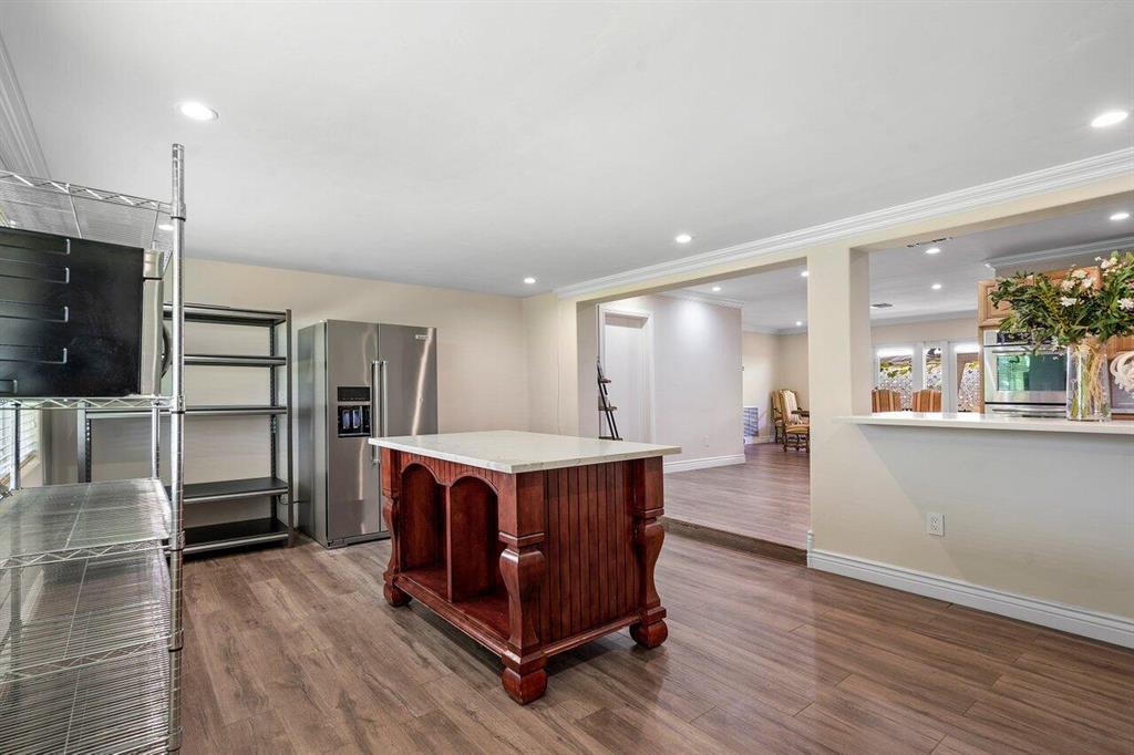 Lovely spacious home with 3 bedrooms & 2.5 bathrooms, 2,836sf of living space plus an extra-large garage. Huge corner lot with about 14,643sf of space. Room for pool. Gorgeous kitchen with quartz counters & stainless-steel appliances. Home has new roof 2018 & new flat roof 2016. Gorgeous onyx shower wall finishes in master bath. Spacious rooms thru-out. Bonus room is currently setup as a movie theater but can convert to 4th room, office, library, studio, gym, etc. New modern vinyl floors over gorgeous terrazzo floors. Home has distinct mid-century feel with great features & details. Commercial-sized stainless steal Electrolux fridge in garage conveys with sale. Garage door & front-entry double-doors are hurricane impact. Home has large circle driveway & 2nd driveway where garage located.