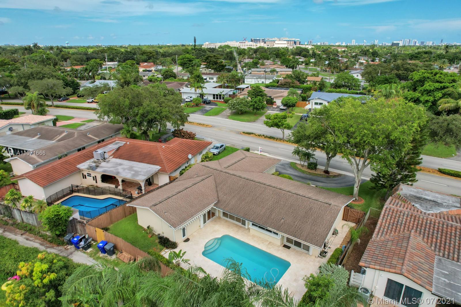 Presenting a spacious and well-maintained Hollywood Hills pool home near Hard Rock Casino, Memorial Regional Hospital, and Houses of Worship (Nativity Church and Temple Sinai). No HOA! This large home boasts a wide-open floor plan with an extra-large family room overlooking the large private pool area perfect for family fun and relaxation. Walnut travertine marble deck and patio surround the pool. Circular driveway with room for 4 cars. Finished 2 car garage with the hurricane-reinforced door. Located only 5 minutes from I-95 and close to the Turnpike.