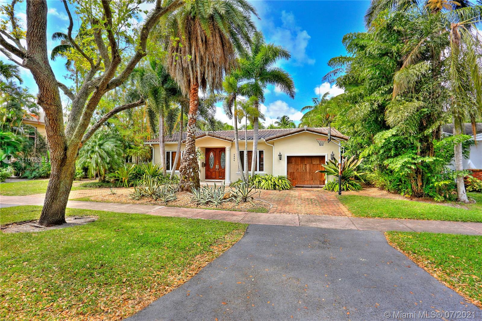 Perfect Coral Gables home beautifully renovated & located on quiet, tree-lined street with great parks nearby. This 4-bedroom, 3-bath house is complete with elegant marble & hardwood floors, & open spaces with lots of natural lighting. The spacious kitchen has a lovely view of the pool area, & features stainless steel appliances, granite countertops, & a breakfast area. The bright living room has high wood-beamed ceilings, glass French doors with serene views of the pool, & a fireplace to add to its character. The additional den can be used as a media room, office or play room, & the home has large closets & plenty of storage.Master bedroom has an en-suite bath, & closet with built-ins.Lushly landscaped yard with a fenced heated pool,circular driveway & 1-car garage, impact glass.