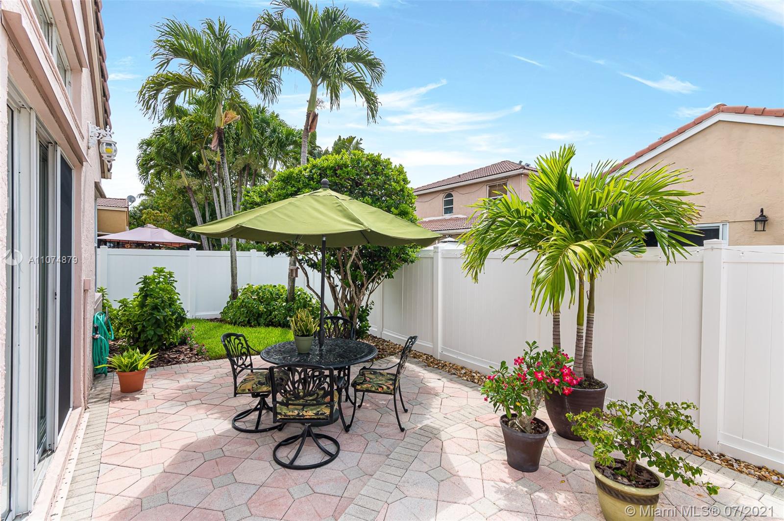 Impeccable 3/2 single family home 2 car garage in prestigious gated community TownGate. Move-in ready with vaulted ceilings. Custom wall mirrors. Newly remodeled kitchen features tall white shaker cabinets, sparkling sleek countertops, Kohler sink, roll-out trays, SS appliances, and reverse-osmosis water filtration system. Walk-in closets in oversized master bedroom overlooking patio oasis. Master bathroom with Roman tub, shower, linen closet, secluded toilet for privacy. Italian porcelain tile main areas; Berber carpet in bedrooms. Laundry room. Energy-efficient AC, hurricane SS panels, HOA $200/month paid quarterly includes cable, internet, 24 hr security. Crystal chandelier not included. Enjoy TownGate’s amenities such as pools, cabanas, playgrounds, gym, parks, tennis/baseball fields.