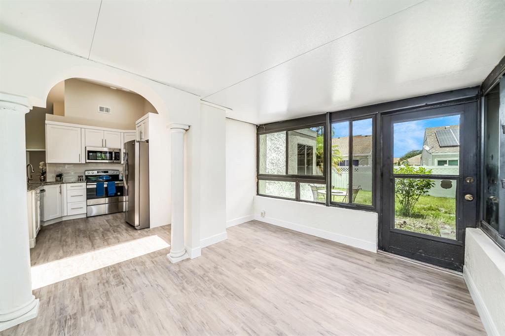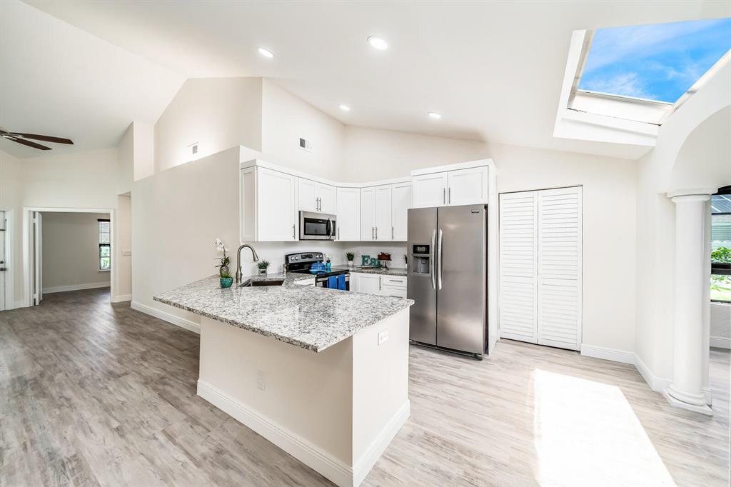 Everything is New & Fabulous in this Home that features 3 bedrooms, 2 baths, & a 1 car garage in the highly desirable community of Trends at Boca Raton. Home is vacant and ready to close ASAP! Open floor plan with Cathedral/Vaulted Ceilings plus wood laminate/vinyl flooring throughout (tile in bathrooms). New updated kitchen w/ granite countertops, white shaker cabinets with pull out drawers, stainless appliances include electric range and microwave, fridge & dishwasher, white subway tile backsplash, skylight, pantry and more!! Master Bedroom has double closets and an En-suite w/combo Tub shower w/updated tile, marble top vanity and wood cabinet with pull out drawers. The guest bath is super updated as well. Brand new Roof just completed End of July 2021! Six foot PVC fence from 2019!