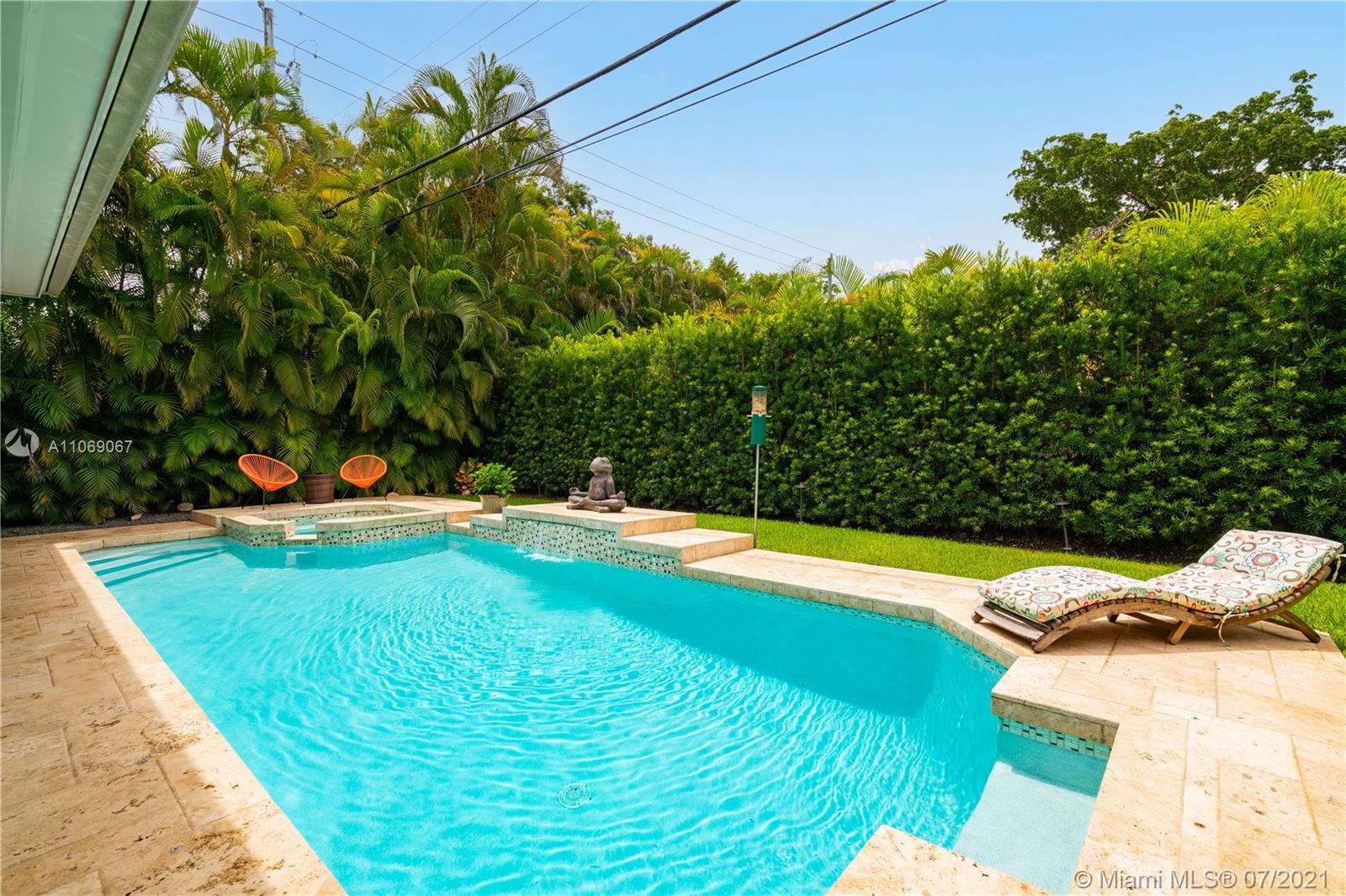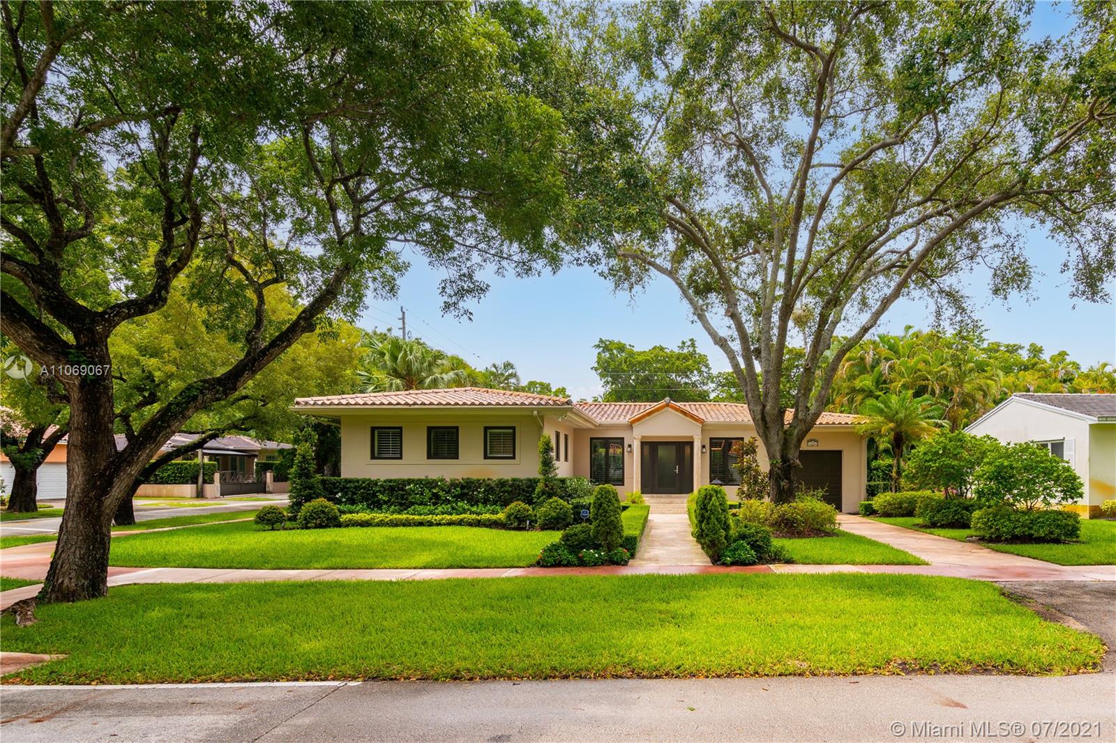 This Coral Gables gem is completely renovated and stunning with enormous curb appeal as it sits on a 9,020’ corner lot. Lush, beautiful landscaping provides privacy and beauty around a glistening pool and jacuzzi as seen from the covered terrace. Cherry woods floors, customs closets, updated bathrooms, and a new eat-in kitchen with quartz counter tops, wood cabinets, Wolf and Sub-zero refrigerator and wine cooler, are just a few of the features of this beautiful home. Newly installed impact doors and windows in a non-flood zone provide for optimum insurance credits. Located just 2 blocks from the Coral Gables Youth Center. A Very Special Home.