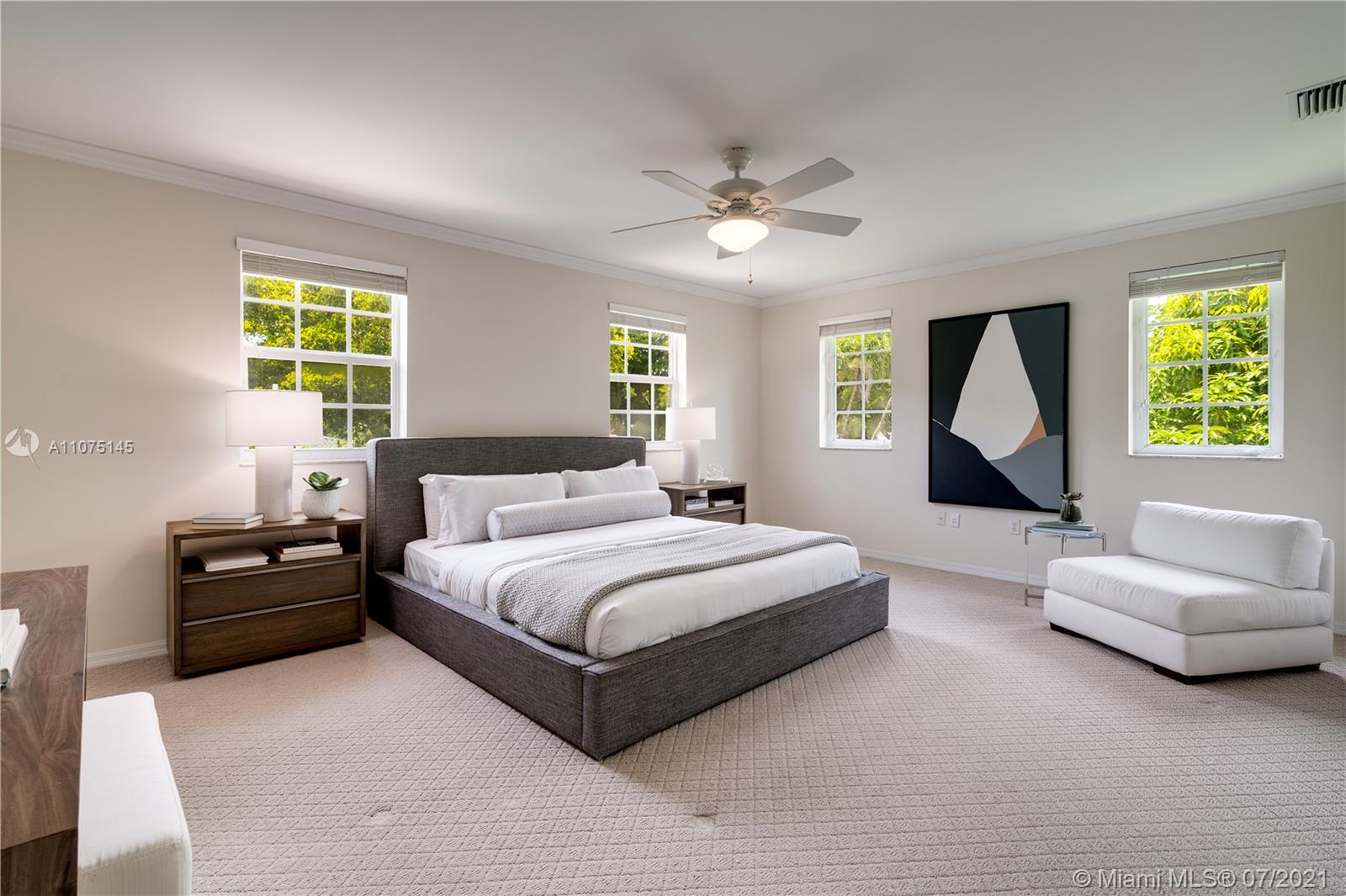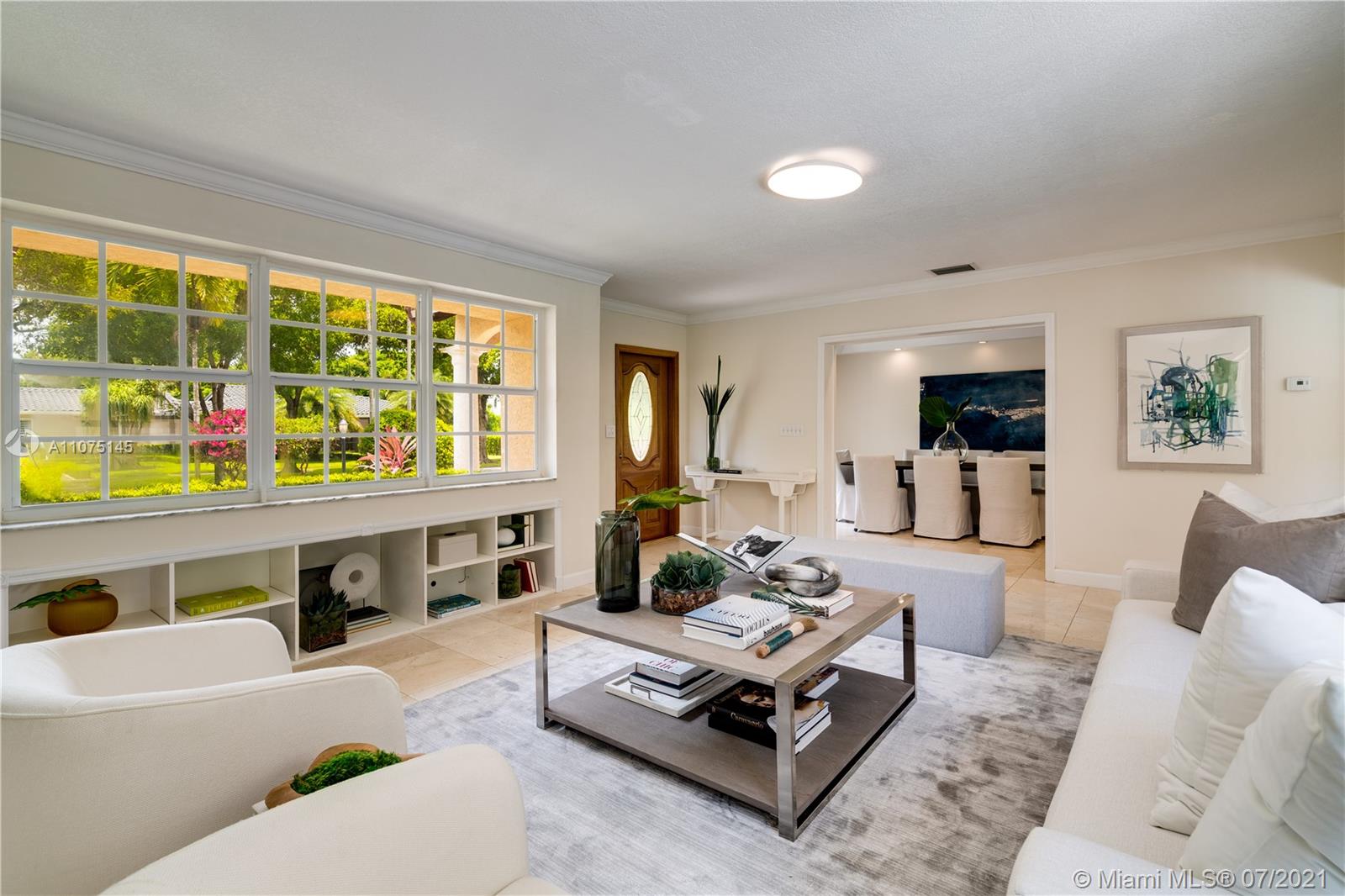 Urban living with the benefits of suburban space! Less than a 1/4 mile from Miracle Mile & all its restaurants & shops, lies this beautifully maintained & updated Coral Gables home on a 12,000 sf lot. Elegant brick circular driveway & front porch invite you in. A true split floor plan, there is an upstairs private primary suite w/free-flowing natural light, 2 walk-in closets, & a jacuzzi tub. There is a second en-suite bed/bathroom downstairs. Another 2/1 bedroom wing has original hardwood floors & plenty of windows for your vitamin D fix! There are family & living rooms w/impact doors/windows overlooking sizable yard w/free-form pool & deck. Spacious 2 car garage w/plenty of storage, & interior laundry. Lovingly cared for home ready for new family to make memories! A Very Special Home.