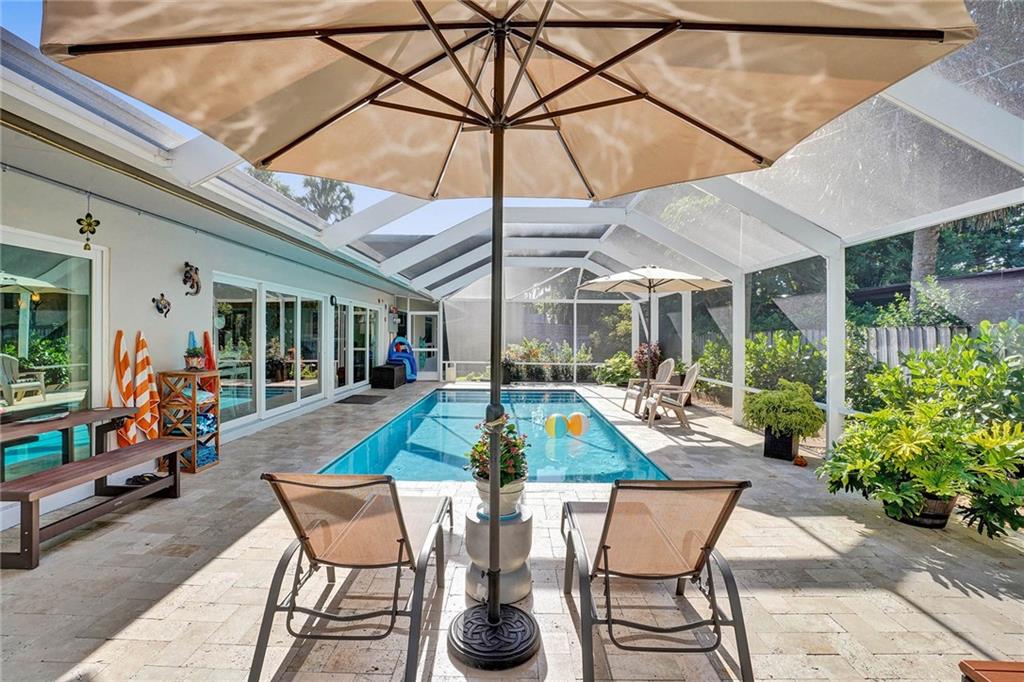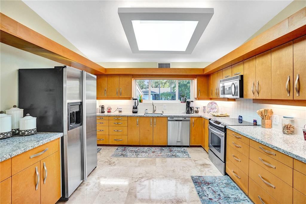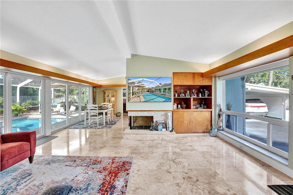 Mid-Century modern 3 bedroom 2 bath home located East of Bayview in Coral Ridge. Impact windows and doors, roof 2017, vaulted ceilings, tons of natural light, wood details throughout, split bedroom floorplan and more. Gourmet kitchen boasts ample cabinetry and stainless steel appliances. Spacious master suite with sauna in master bath. Large backyard with screened-in pool and patio plus separate grass area. Beautifully landscaped front and backyard. Located in Bayview Elementary school district.