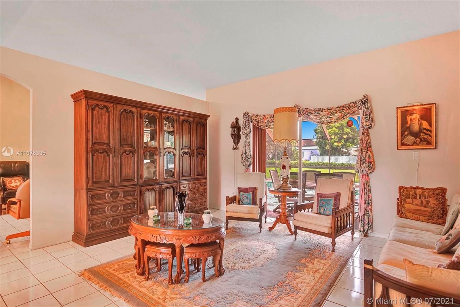 Great location! 3 bedroom, 2 bathroom Sunrise home with high ceilings and split floorplan. All tile throughout; no carpet anywhere. Master bath features walk-in shower plus soaking tub. Large pool with extensive patio area, great for entertaining. Very well-maintained community just minutes from Sawgrass Mall. Roof 2003, A/C 2019. House exterior recently painted. Furniture negotiable. This home is being sold completely as-is. Open house this Sunday 8/15 from 2-4pm.