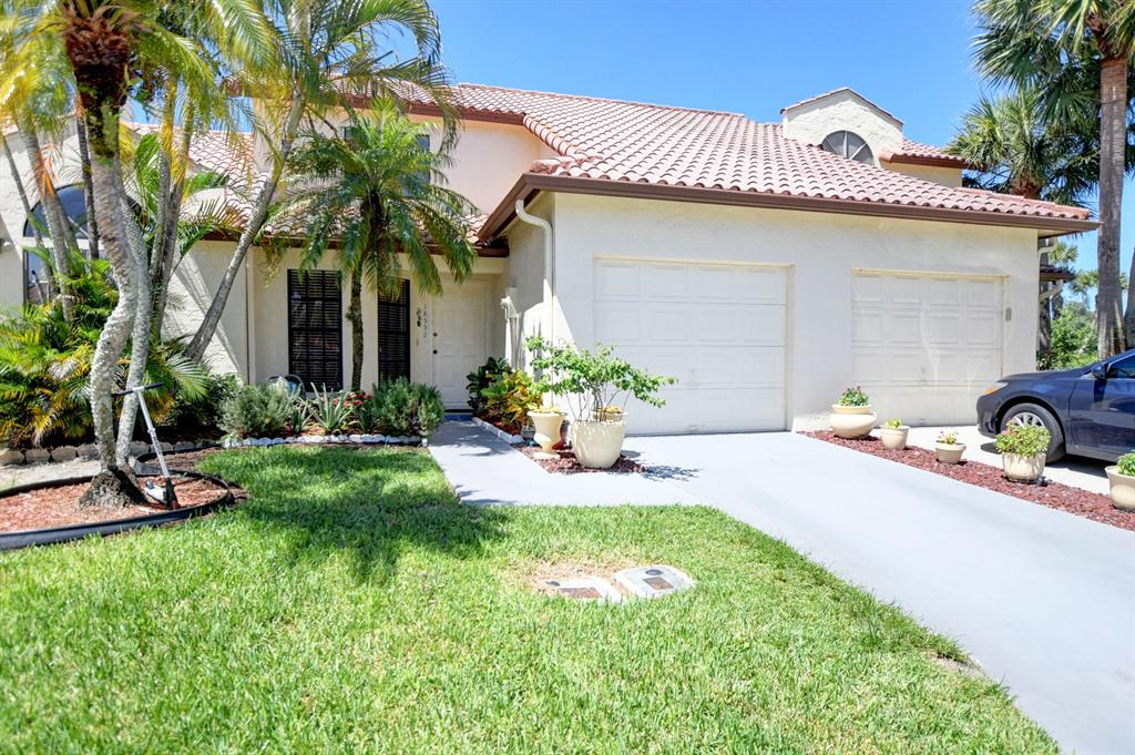 Fabulous lakefront 2 story townhouse with 1 car garage & screened patio; remodeled kitchen with wood cabinets & granite. Beautiful marble look tile floors and laminate upstairs and master. master upstairs with updated bath, 1 bd/1bath down; full sized washer & dryer; quiet development offers community pool & tennis; great schools; 1 pet under 50lbs ok. All ages! Woodstream is part of the Lakes of Boca Raton and offers community clubhouse, heated pool & tennis, basketball, BBQ, picnic area, playground, and manager on site; close to shops, library, and schools... MOTIVATED SELLER! Seller will give $6000 credit to buyer at closing for future roof replacement. No known issues with roof right now.