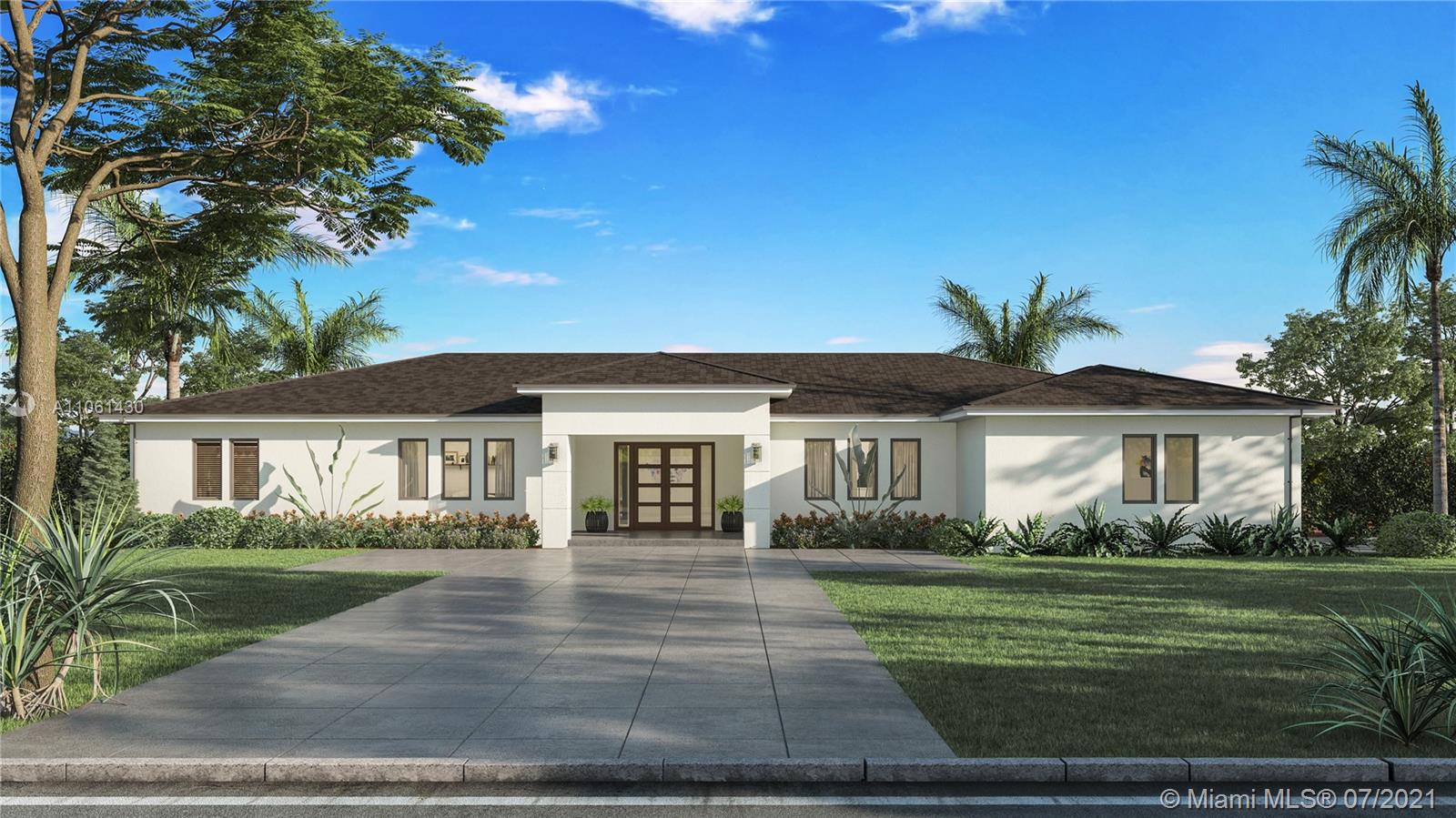 New Construction Dream Home on a quiet street in Pinecrest. Exquisitely designed by Cyndi Navarro, known for creating harmony of classic style with modern clean lines. Spacious open concept floor plan with 10 ft ceilings, European porcelain floors and bronze impact windows and doors. Desirable new technology kitchen with custom cabinets accented by marble counter tops, seamlessly integrated with the main social area. All 4 large bedrooms include individually designed d en-suite bathrooms. Step outside to an expansive covered terrace, outdoor kitchen and modern pool with beach swim out to indulge in the perfect Florida life style.Slated Fall 2021 completion date. By appointment only.