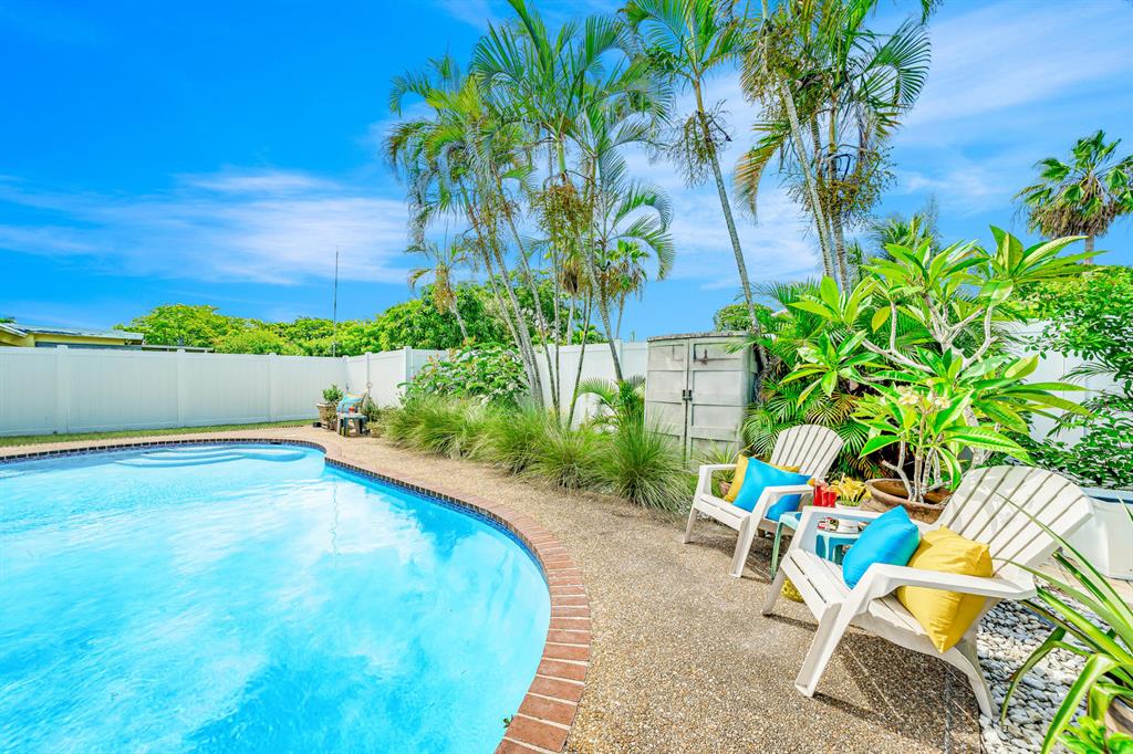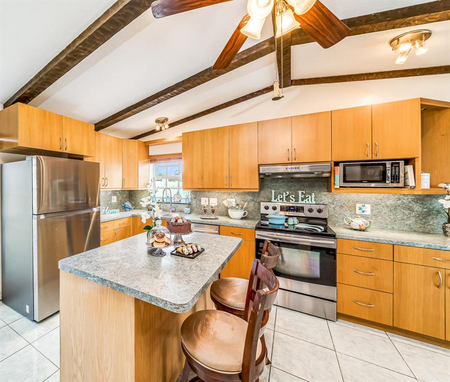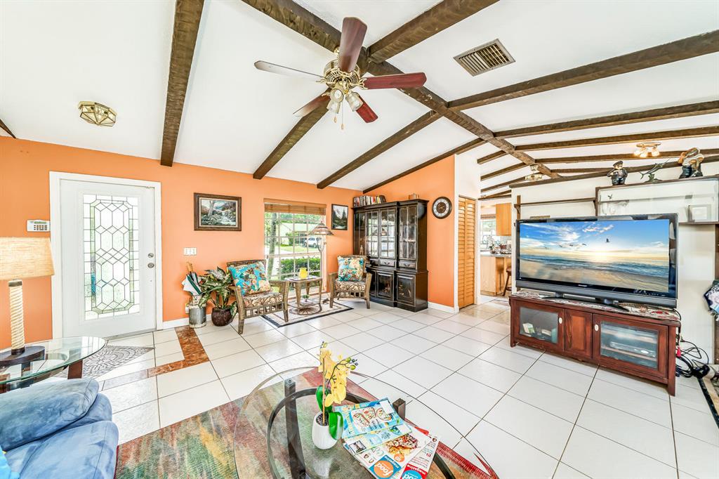 WOW!!! True 3 bedroom, 2 bath, POOL Home on a private corner lot w/2 driveways. Home features an open & spacious floor plan w/huge vaulted/cathedral ceilings w/faux wood beams in living-room & kitchen. Impact windows & front door. Custom gourmet kitchen w/stainless appliances, center island, sunny breakfast area, lots of counter space/many cabinets, plus large pantry. Tile throughout living areas and 1 bedroom. Laminate flooring in the other bedrooms. Large screened in/covered patio with access from kitchen and living room through sliding doors. New PVC Fenced in tropical retreat backyard. Sparkling pool was recently diamond brighten & has new shiny blue tile. Tons of beautiful landscaping. Covered/screened in patio w/ceiling that is tongue & groove cedar wood w/recessed lighting