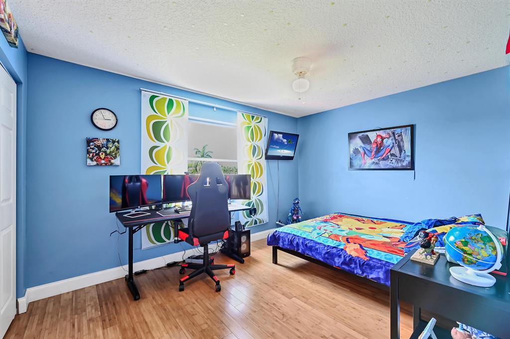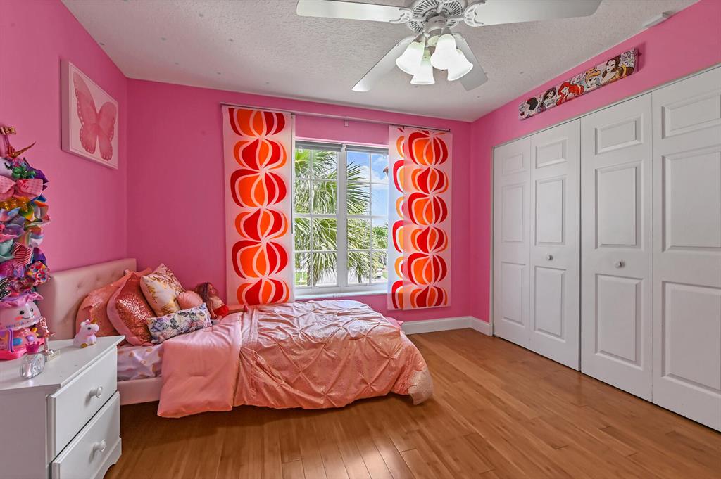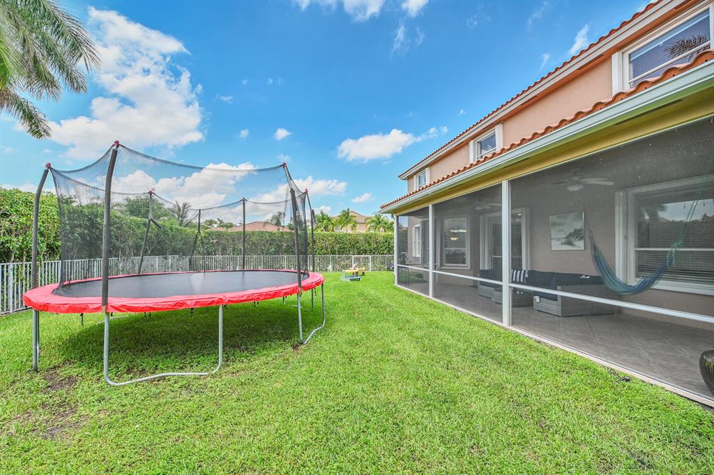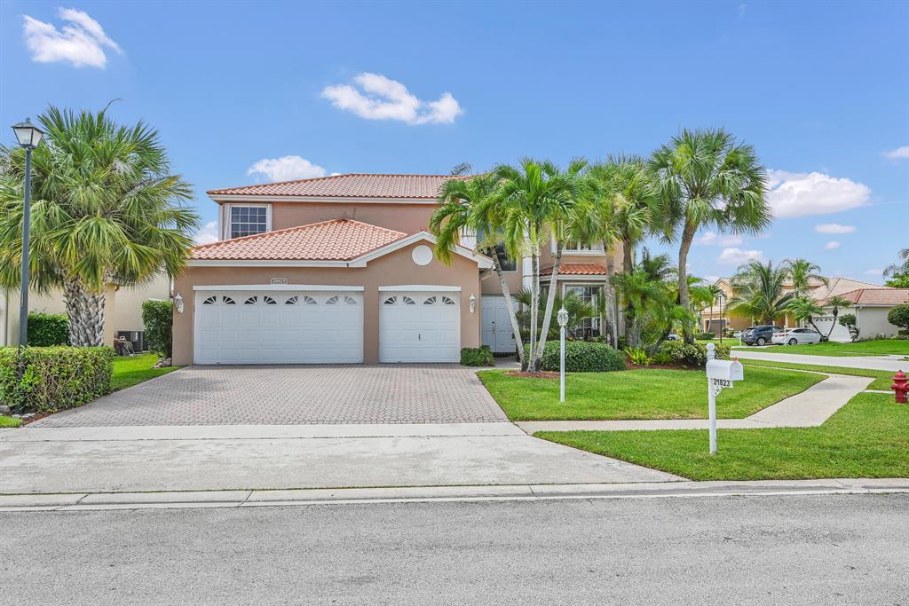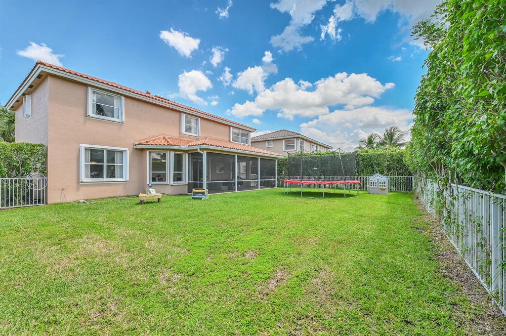 Immaculate Bal Harbor model in prestigious Boca Winds. This 4 bedroom, 2.5 bath home sits on an oversized fenced corner lot and features a screened patio. Fully hedged private back yard with plenty of room for a pool. Newly remodeled quartz kitchen counters and stainless steel appliances with eat-in area. Inviting grand foyer with high ceilings and a great floor plan for a family and entertaining friends. Large master bedroom with European style vanity. Beautiful bamboo wood floors throughout the upstairs and bedrooms. 3 car garage and accordion hurricane shutters. You can walk to highly desired ''A'' rated schools. The roof is from 2019 and the garage has AC. The community has 2 tennis courts, a basketball court and a beautiful pool with a clubhouse. This is a must-see