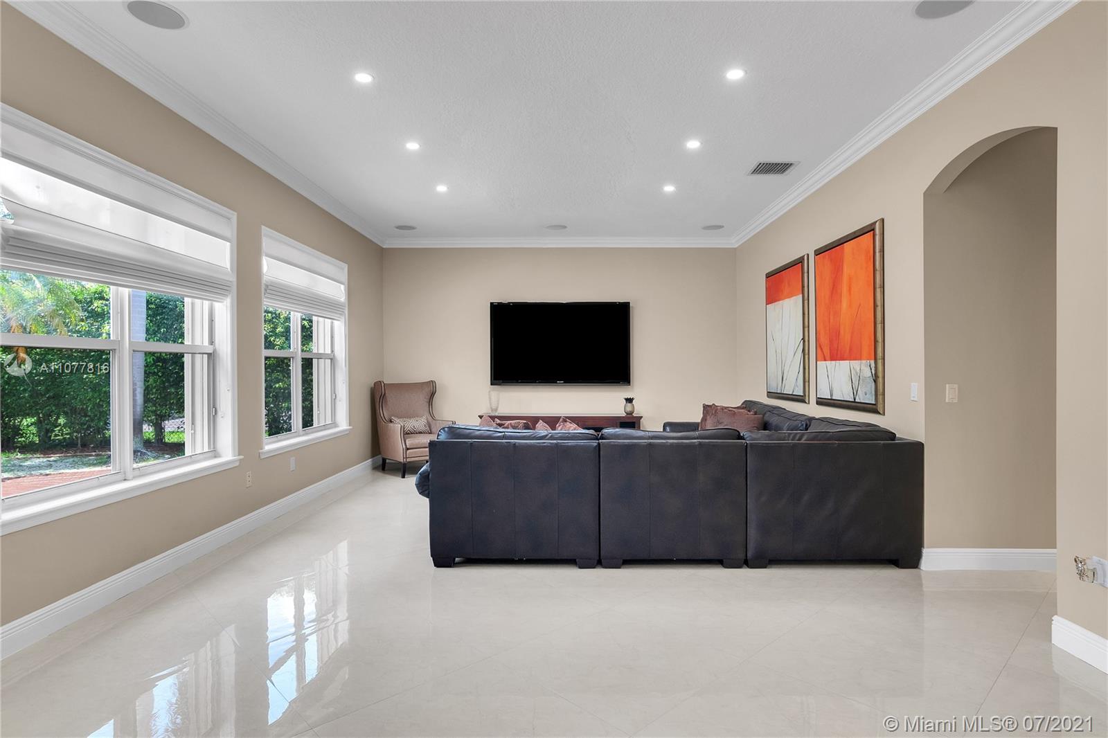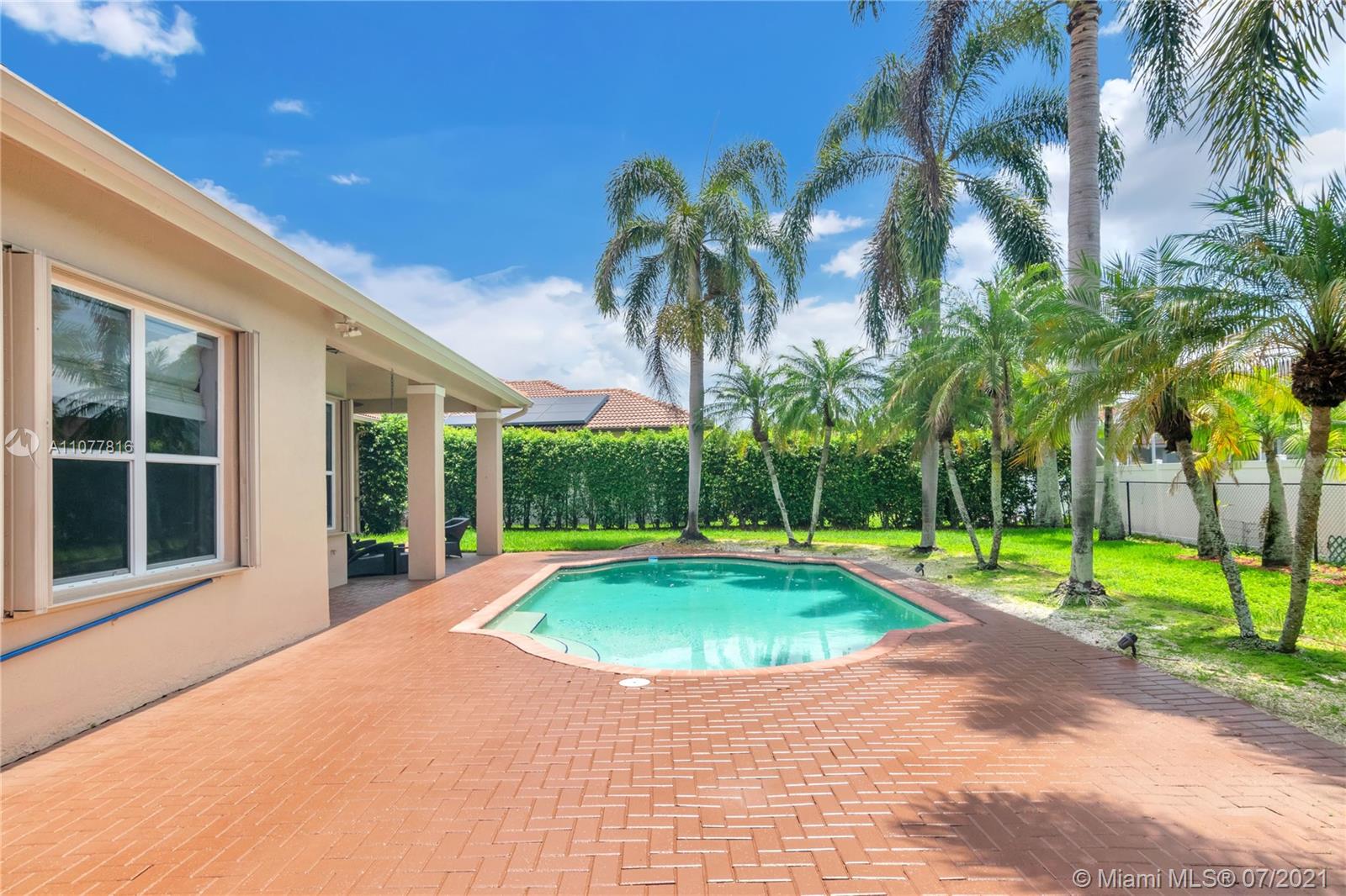HERE IS THE PERFECT HOME waiting for you! nSingle Story house, gated community, upgraded kitchen espresso cabinets with quartz countertop, Kitchen aid stainless steel appliances, 4 door refrigerator, range hood, microwave, glass cooktop oven, wine cooler, gorgeous accent backsplash, walk-in pantry. Enjoy the spacious living room, dining room, and family room and connect through the covered patio and pool area. 3 car garage dress with Poxy flooring and Cabinets to storage, cameras, accordion shutters, UNIQUE lighting fixtures from Farrey's and ZGallerie all included. Crown molding covering every corner, and a lot more details to appreciate it every day. Large Master bedroom, bathroom with Jacuzzi Tub, 2 walk-in closets, marble floor, and unique details inside the shower. (NO Dishwasher)