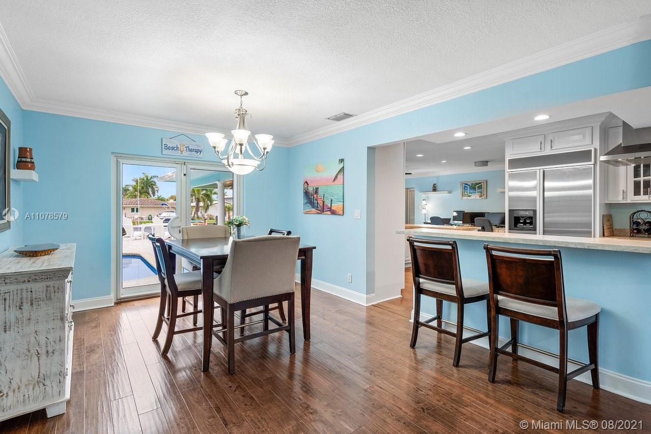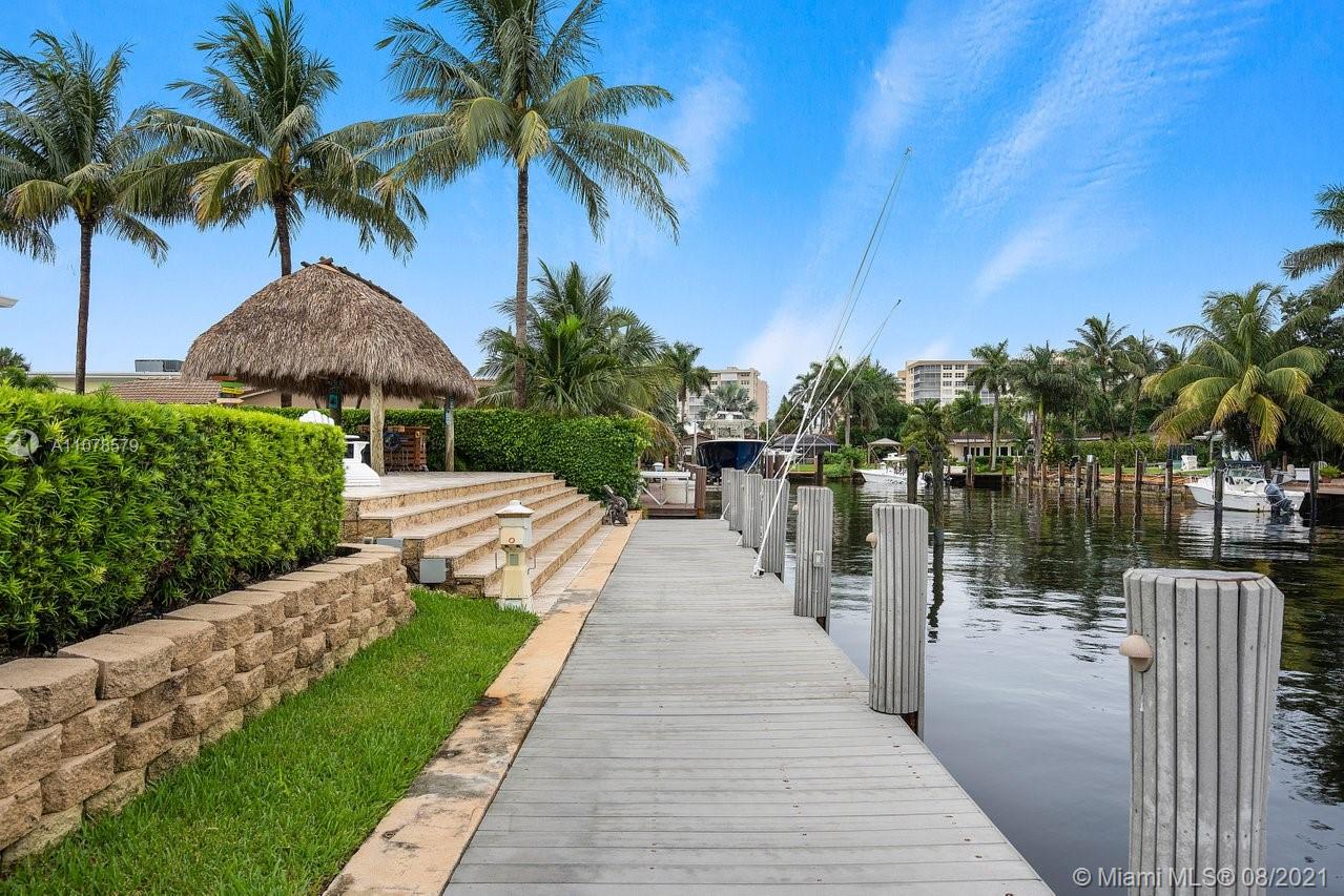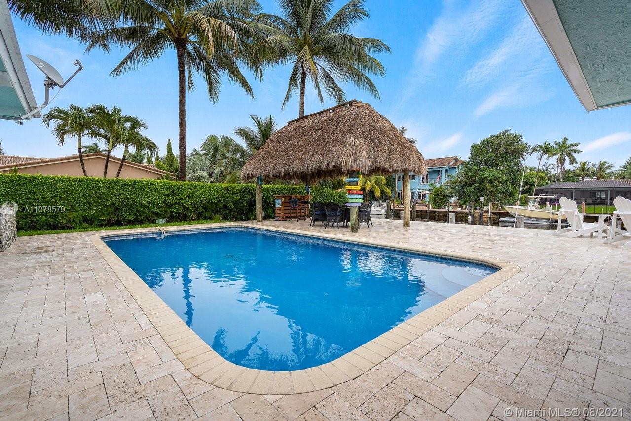 A boater's dream home with a private dock 90ft on the water and just minutes from the Hillsboro inlet and the open ocean with No Fixed Bridges. The property is Completely Remodeled and Move-in Ready. Featuring hurricane impact windows & doors, a spacious layout with wood floors throughout, beautifully upgraded kitchen and bathrooms. A work of art backyard offering a private Pool, an Outdoor Kitchen with a Tiki hut all overlooking the dock and water. Great curb appeal with tropical landscaping, circular paved driveway and a 2 car garage.