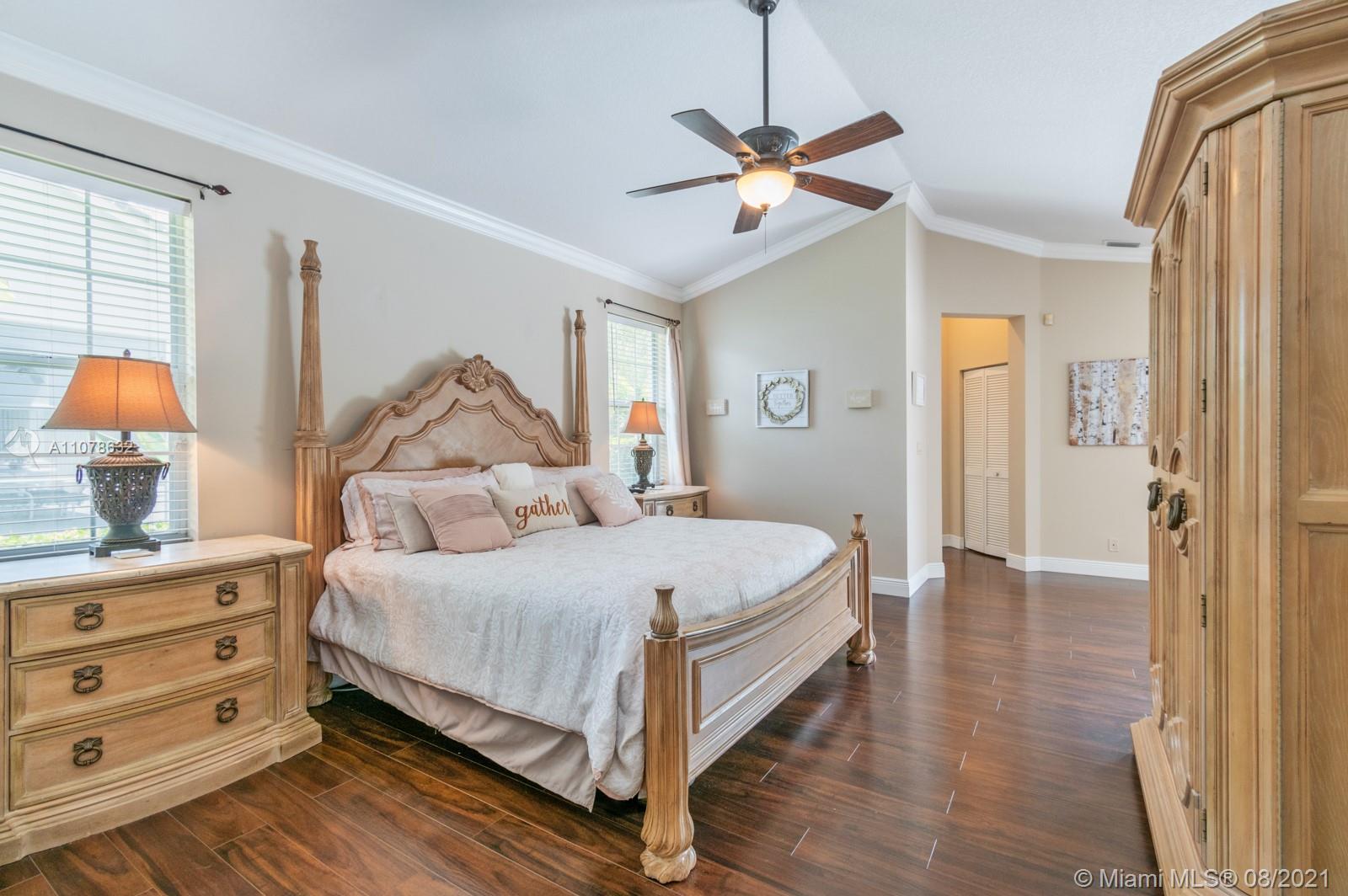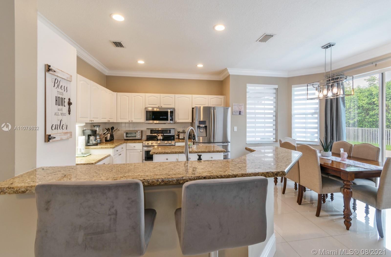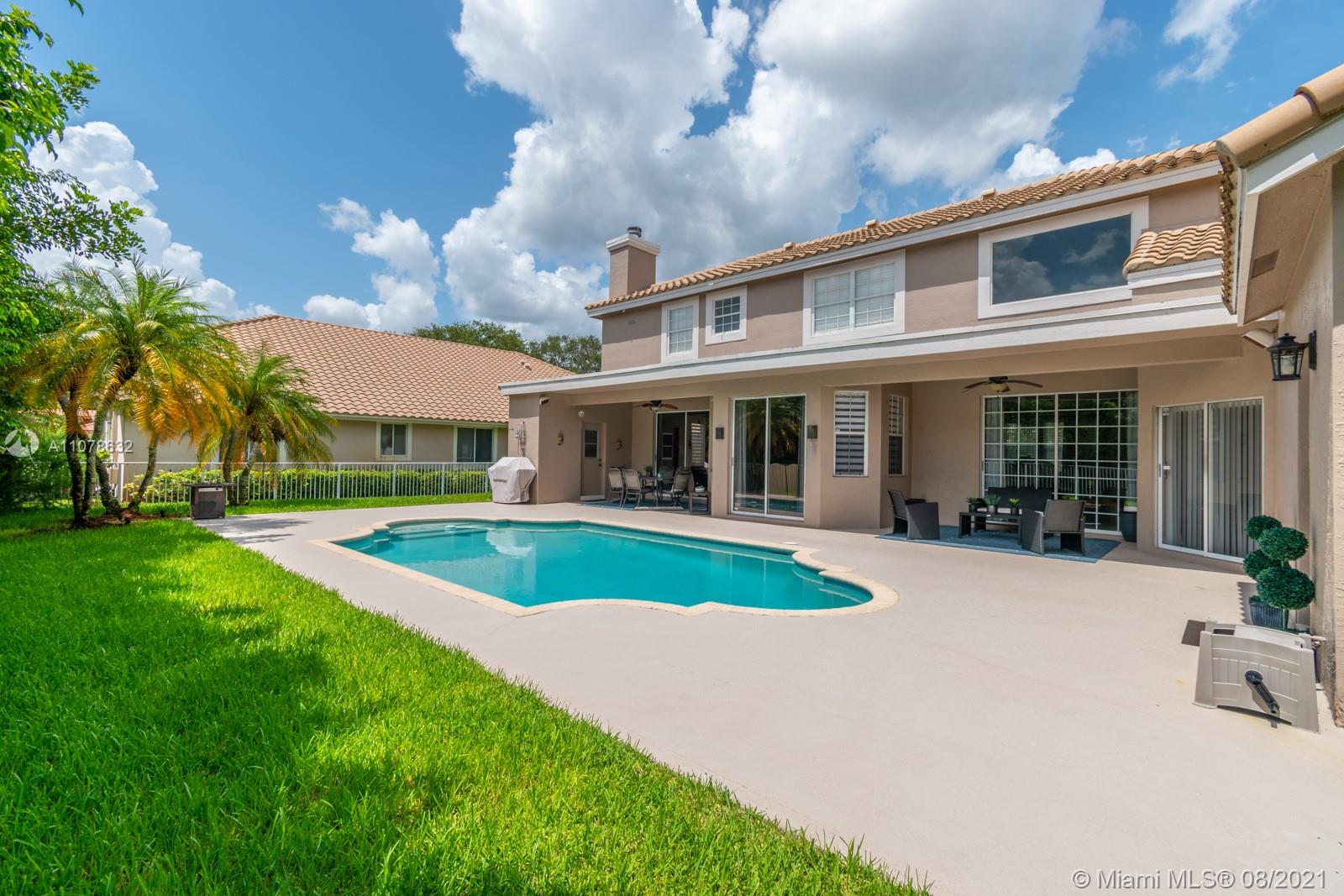 Located in the luxurious gated residences of Fairways at Eagle Trace you will find yourself in a beautiful family friendly community with gorgeous landscaping, quiet streets and top rated schools. This magnificent move in ready home features beautiful polished ceramic tile, updated in eat kitchen, stainless steel appliances, granite counter tops, led lighting, fireplace, huge primary bedroom with pool views, walk in closets, engineered swiss laminate flooring. All bathrooms have been completely renovated, tons of storage, oversized 2 car garage, pool, tankless water heater and the list goes on. Schedule your private showing before it's gone !!