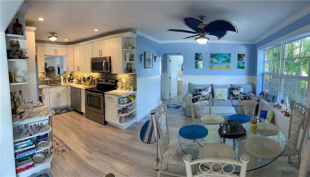This Home is a amazing Tropical Paradise that has been completely updated. Large Corner Lot, Bright White Open Kitchen, Stainless Steal Appliances, Beautiful flooring that compliments the beach style of this home. This 2 Bedroom 1 Bath is great for entertaining as the back yard has a putting green and a Tiki Style Bar.