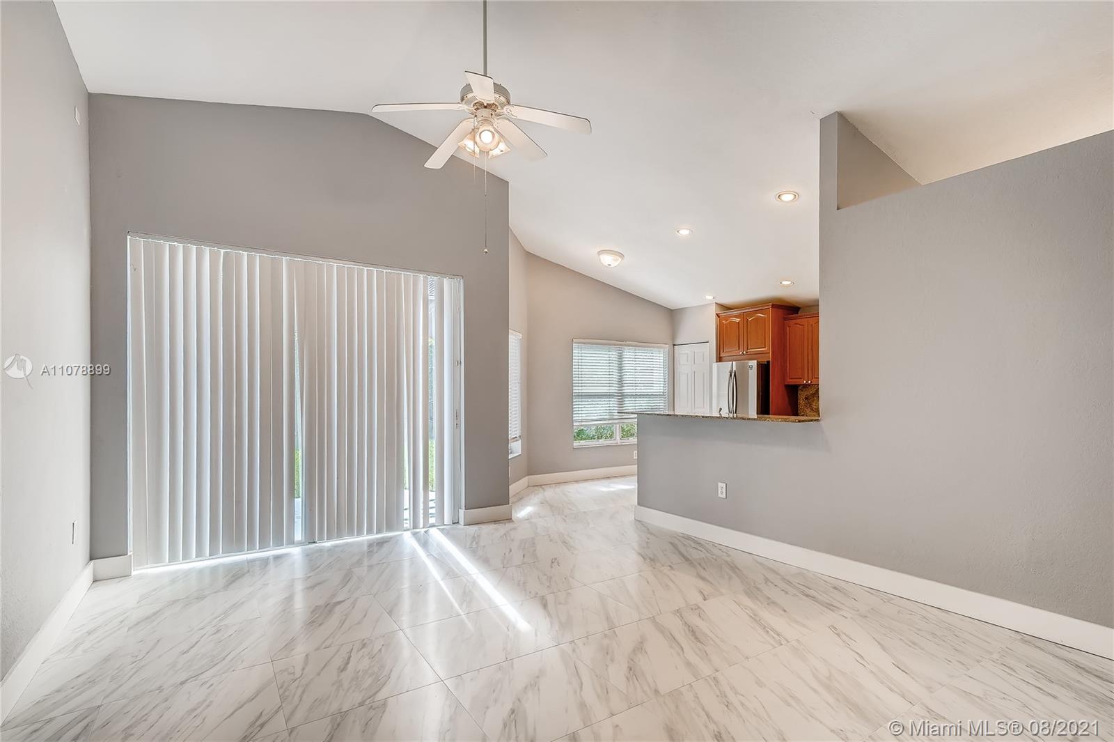 Corner Lot with VERY DEEP Private yard. Updated kitchen Cherry Cabinetry, Granite and brand new appliances. Both Baths Updated and Upgraded new Tile floors. Accordion Shutters. Tiled Entrance-Foyer, Family Rm and Kitchen-Breakfast Area . Brand new floors throughout the house. High Ceilings, Covered Porch, Paved Drive-Walkway. Maint includes: Alarm Monitor, Cable TV, Lawn Maint & Sprinklers, 24 Hr Guard Gate, Community pool, Weight Rm, Tot lot. This one will not last!