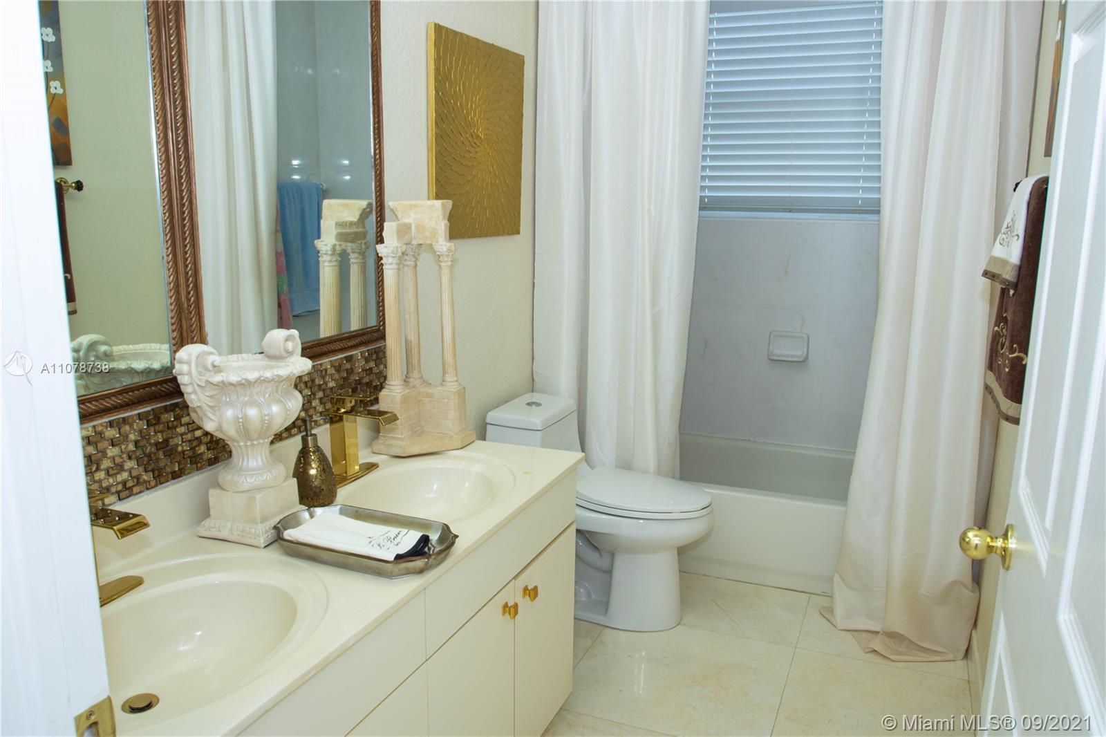 Owners just executed a contract on another property! Furnished! Former Ambry Homes model. An expanded version of the gorgeous Venice model. This unique courtyard home has been remodeled with over $600,000 in upgrades. Professionally designed and decorated with touches of Mediterranean elegance and modern design. Upon entering the home, you will experience an ambiance of elegance and glamour. White Turkish high polished marble floors and fine chandeliers are the first to experience. Then, you will step to a brand new kitchen with marble counters tops imported from Italy. SS appliances, incl. a brand new refrigerator and more. A well-equipped gym, a guest quarters, impact windows, $100K pool, built-in electric generator. Offers with a pre-approval ltr and proof of funds.