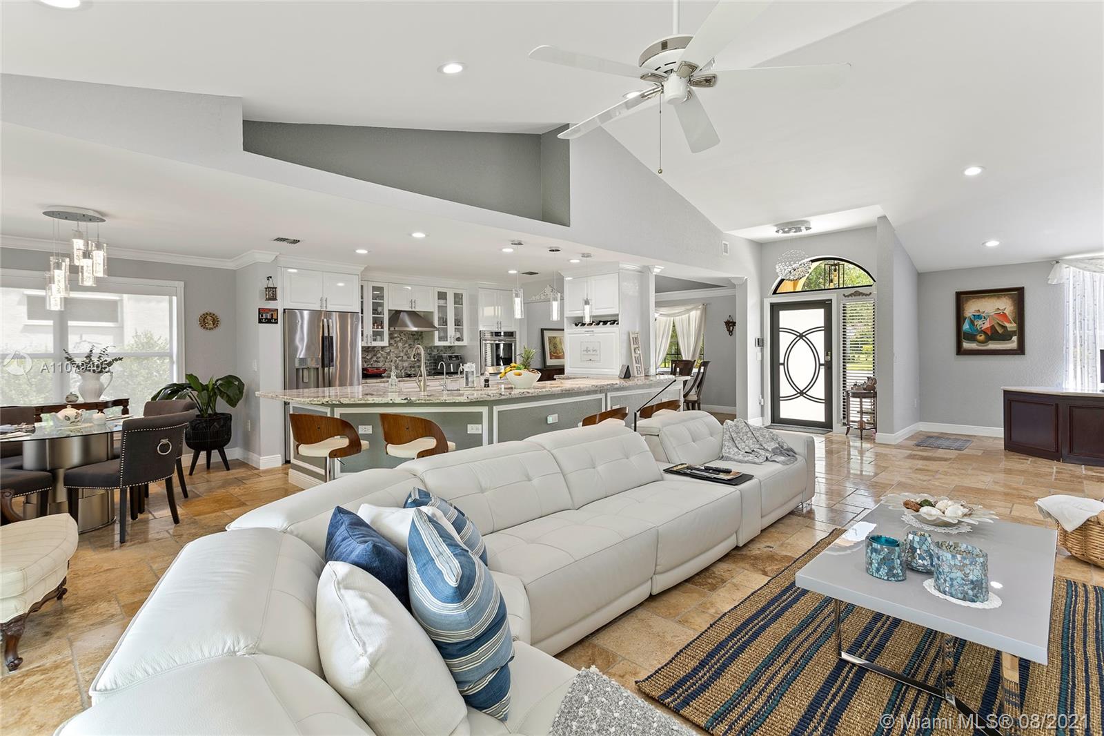 AWESOME newly renovated property with modern open space design located on a cul-de-sac with almost 1/2 acre lot, this 3/2 waterfront home features: Eat in Kitchen w/Stainless steel appliances formal dining and living rooms, vaulted ceiling in living/dining, tile floors, large laundry room, impact windows and hurricane shutters, patio and oversized backyard with fruit trees and plenty of room for a pool. Best of all NO HOA. Make this your forever home.