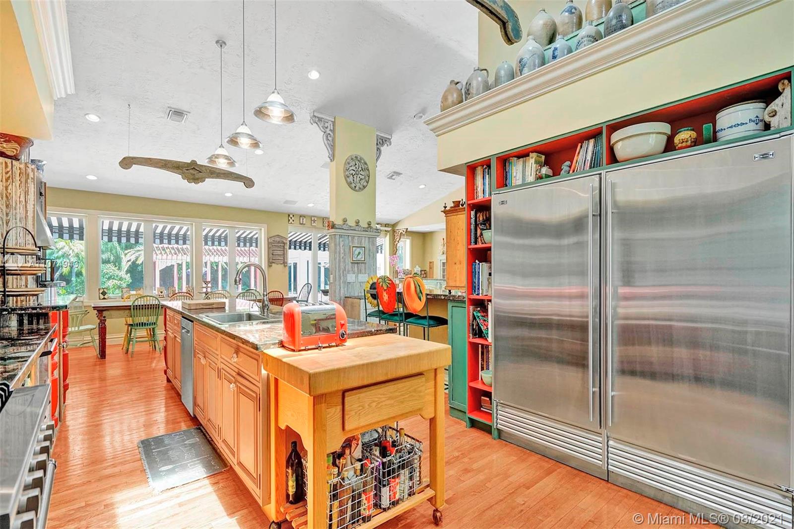 First time on the market. Magnificent near 2-acre custom-built estate located in the prestigious neighborhood of Windmill Ranch Estates. This unique home is perched on one of the most private lots in the community. Constructed in 1989, this charming Key West style residence boasts soaring ceilings, 4 spacious bedrooms in the main house, plus a billiard room with 4.5 bathrooms plus a pool party house/guest house with full bedroom, full bath, and kitchen. Grand formal living areas, wood-burning fireplace, amazing children's wing & ensuite guest suites. Kitchen fit for a chef, Viking Range with Dual Fuel Gas Top and electric oven, Stainless Steel appliances, Sub Zero, professional wood/gas burning pizza oven plus a custom bar. Beautifully landscaped backyard with oversized pool/ pa.New Roof