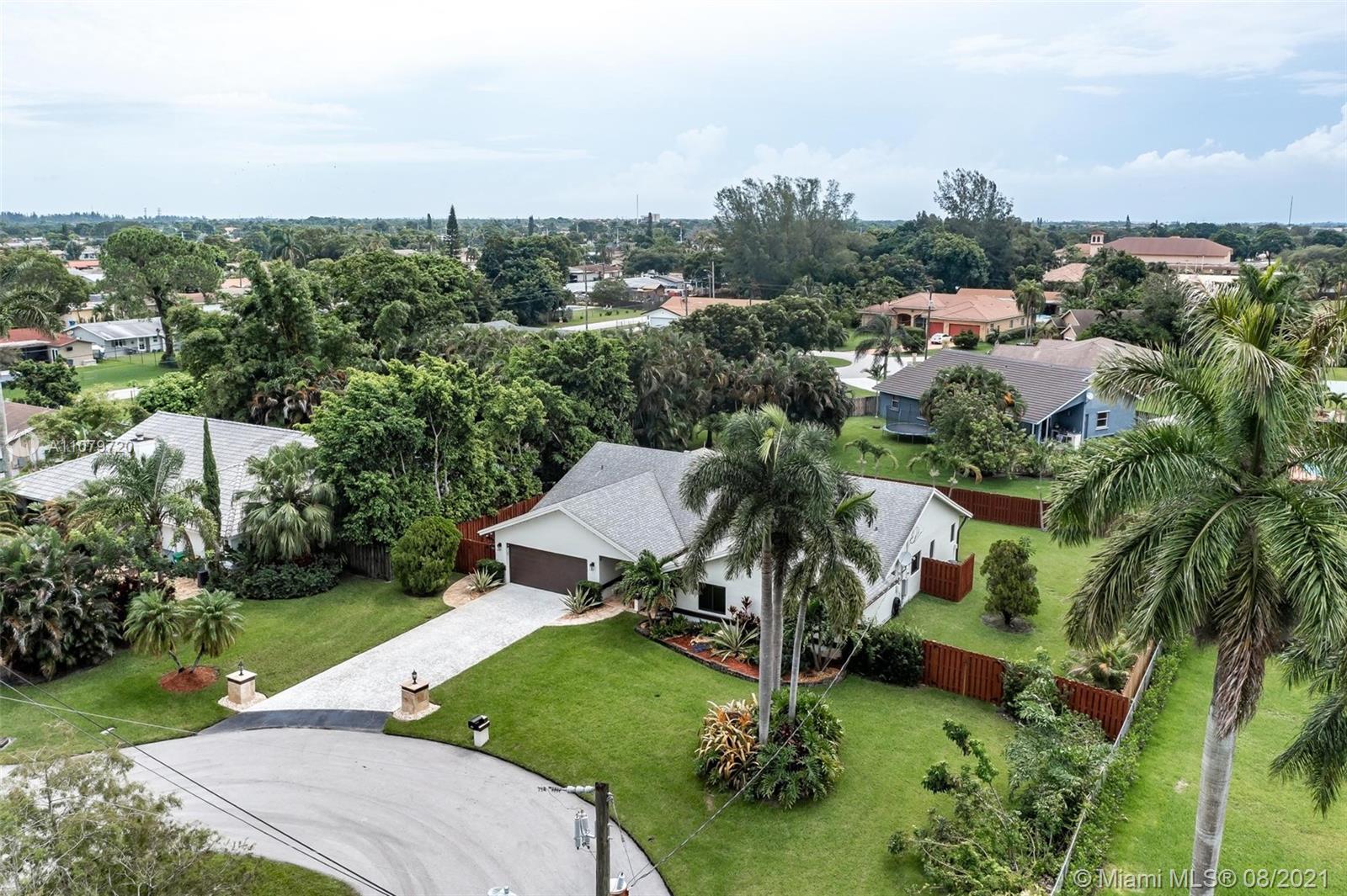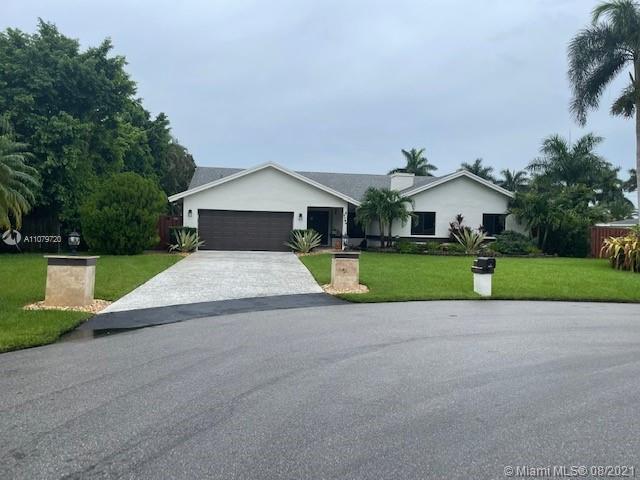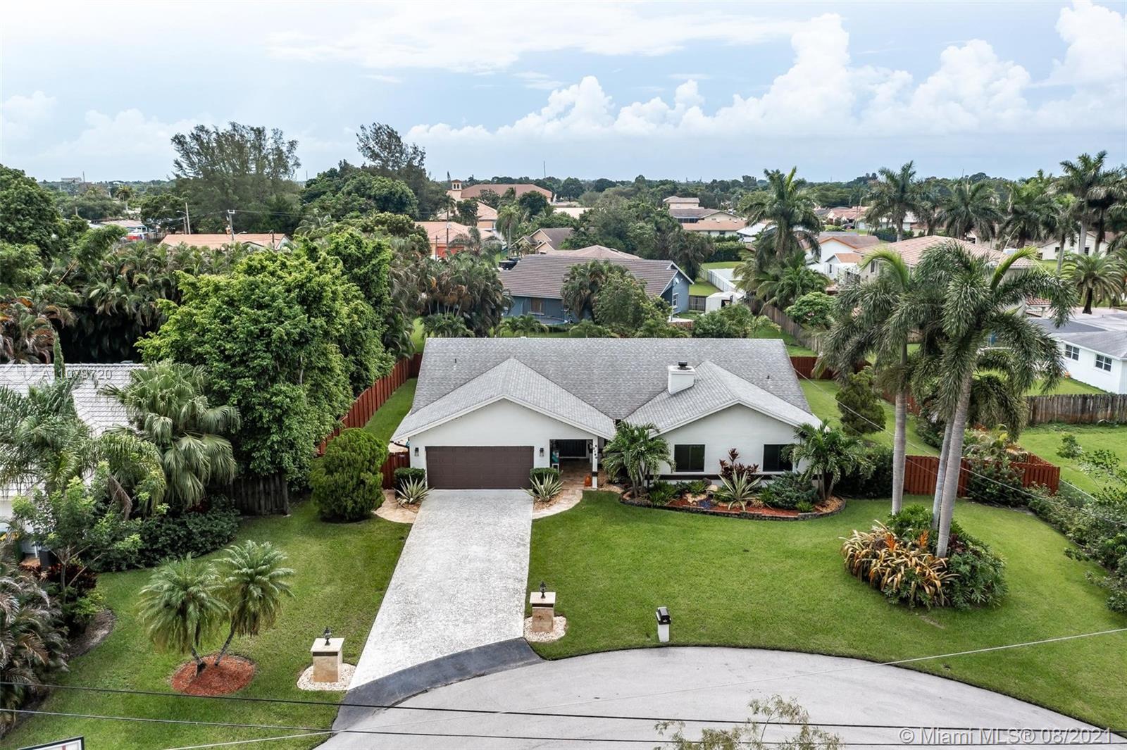 Beautiful 3/2 Plantation Acres home on a fenced half-acre cul de sac homesite. Completely updated from top to bottom. Huge master suite. 2017 roof, impact windows/doors, new kitchen with stainless steel appliances and quartz counters, a/c 2018, Genrac standby generator 22000KW with 2 110 propane tanks, seamless gutters, travertine marble pool deck and remodel, new shadowbox fence, exterior paint 2019, new water heater and bath remodels 2021. This one checks all the boxes. Gorgeous covered patio with custom landscaping in front and back. Close to shopping, Sawgrass Mills Mall and highways.