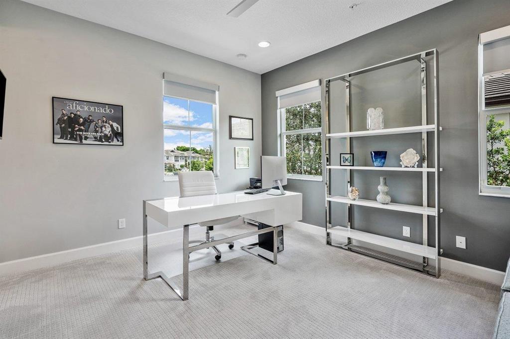 Do not miss this stunning move-in ready, professionally decorated and upgraded 4 BR / 3.5 Bath home with a 1st-floor master suite. Pointe100 is a newer built (2017) enclave of 100 townhomes in Boca Pointe, a non-mandatory country club community. Shops and restaurants close by; minutes to I-95. An entertainer's dream, meticulously designed with exquisite style to provide both comfort and elegance with spectacular finishes. The soaring 12-foot first-floor ceilings give lots of light and brightness to this home. The kitchen has walls of cabinets and storage. The kitchen, dining & great room overlook an outdoor waterfront oasis with a patio to enjoy sunsets. The 2nd floor has an additional 3 bedrooms & a large loft. All furniture is for sale. Do not miss this one; it will not last long.