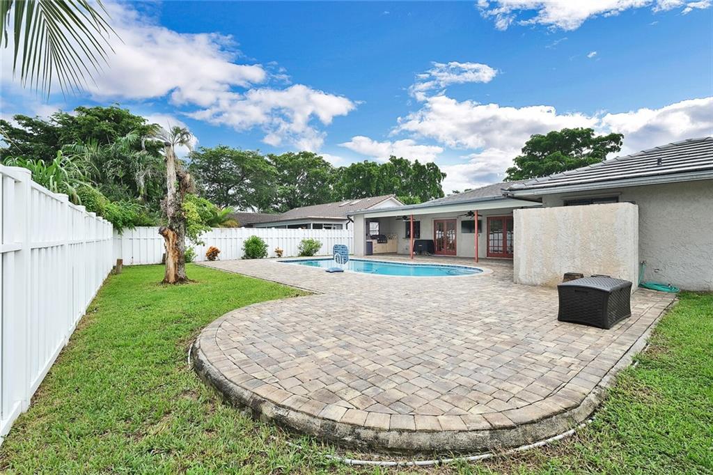 Beautiful 4 bedroom pool home in highly desirable Cypress Glen neighborhood! Featuring vaulted wood-paneled, this open and airy floor plan is great for entertaining! Open kitchen has been updated with real wood cabinets, granite countertops, and stainless steel appliances and flows into the family room. French doors take you outside to your fenced in tropical oasis backyard. Pool was recently updated with extended paver brick backyard, new diamondbrite, and new LED pool light. Stacked bedroom plan. Master bedroom features an XL walk-in closet, 2 sinks, and a cabana bath door to the pool area. 2nd bathroom beautifully updated and features double sinks and extra built-in storage. All bedrooms are good sized. Water heater 2 years old, AC less than 1 year old, Roof 2006!
