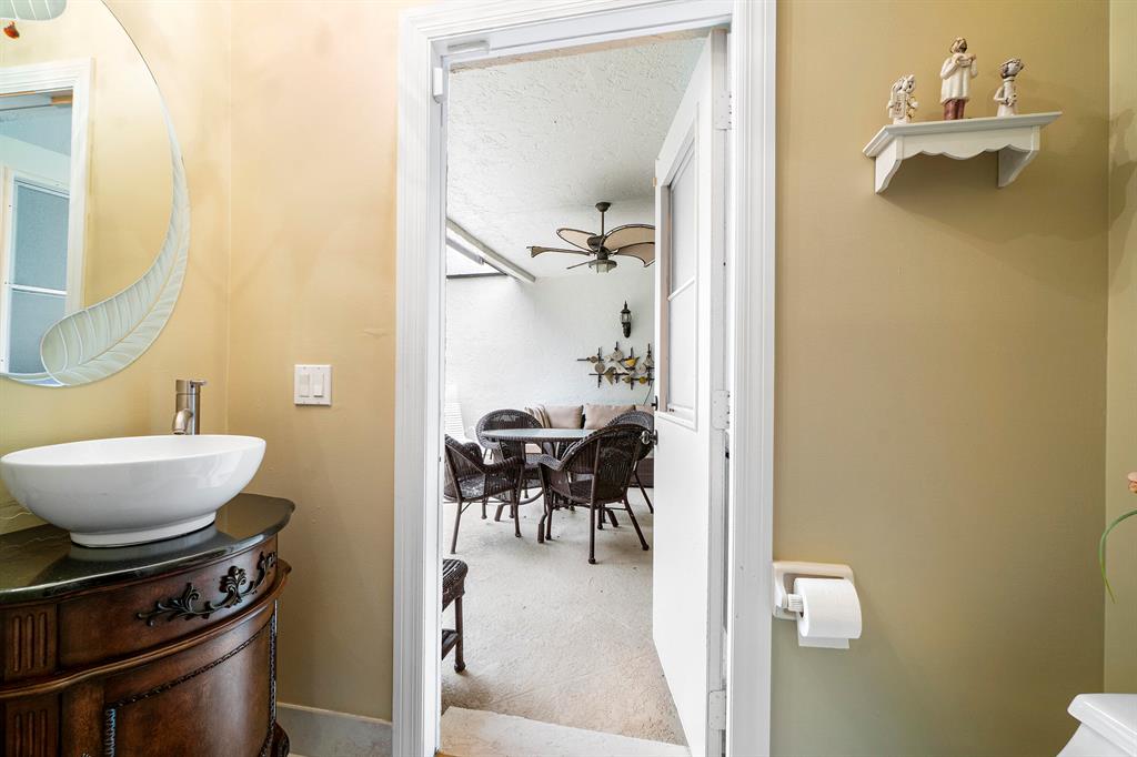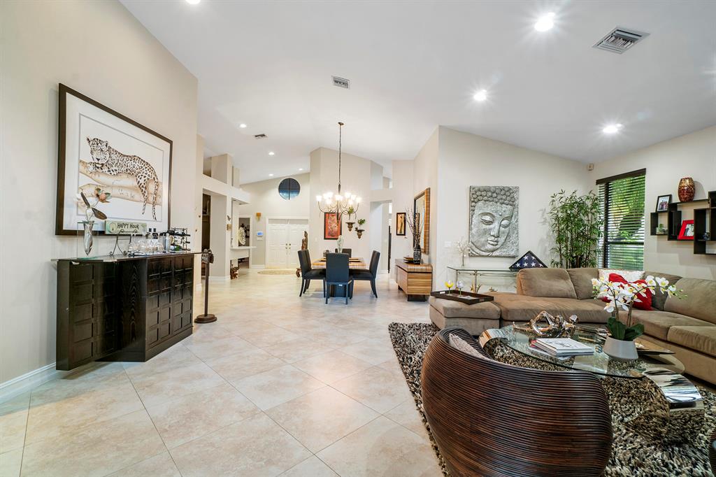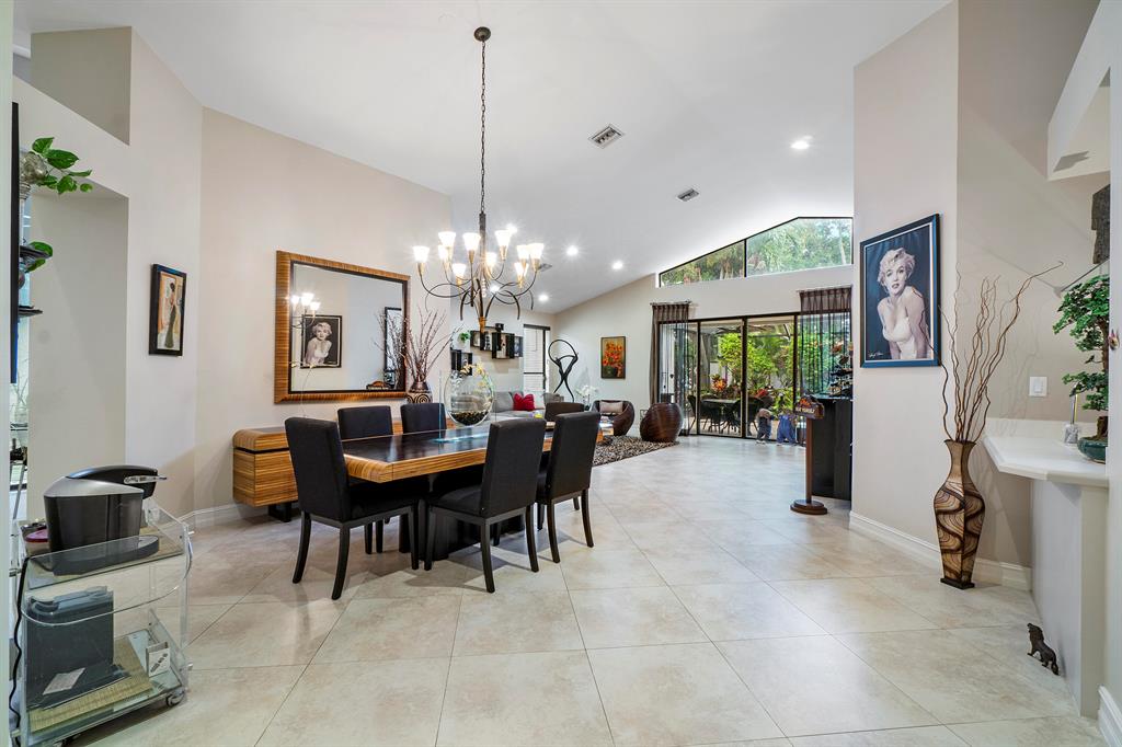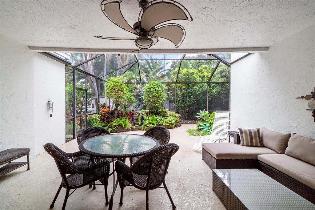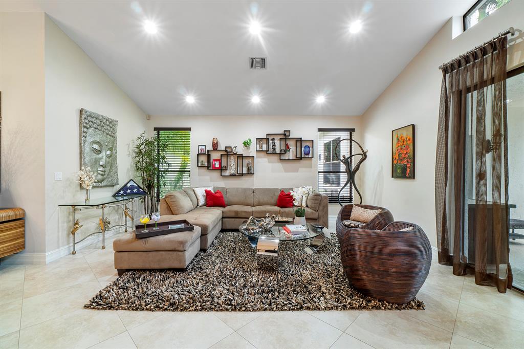 Welcome to your new home located in the 5-star platinum resort of Broken Sound -- one of Boca's best country clubs! Once in the foyer, the space opens up with volume ceilings, a large living & dining area flowing into an open den with wet bar. The den could also serve as another bedroom, as it shares a renovated double vanity bathroom with a guest suite. On the opposite end of the home is an oversized master bedroom with two spacious walk-in closets and a marble master bath. The kitchen features granite countertops and plenty of ample storage. From the breakfast nook, enjoy views into the lovely patio & yard. Both the master and living room feature walls of glass doors leading to the beautiful screened-in lanai with a corner garden and water feature.