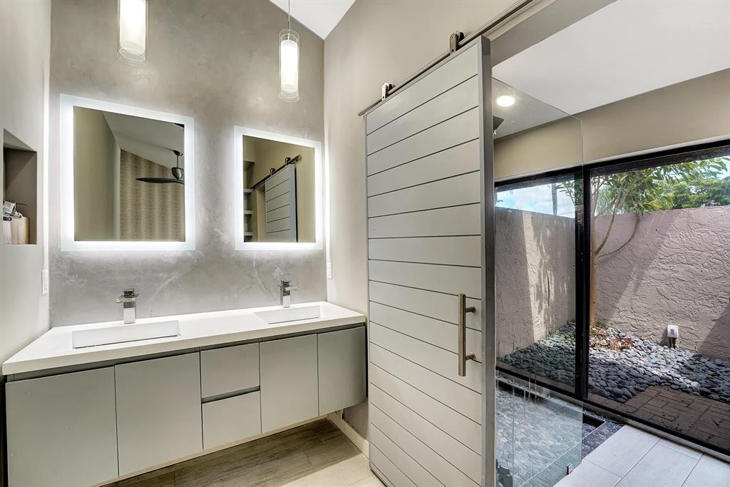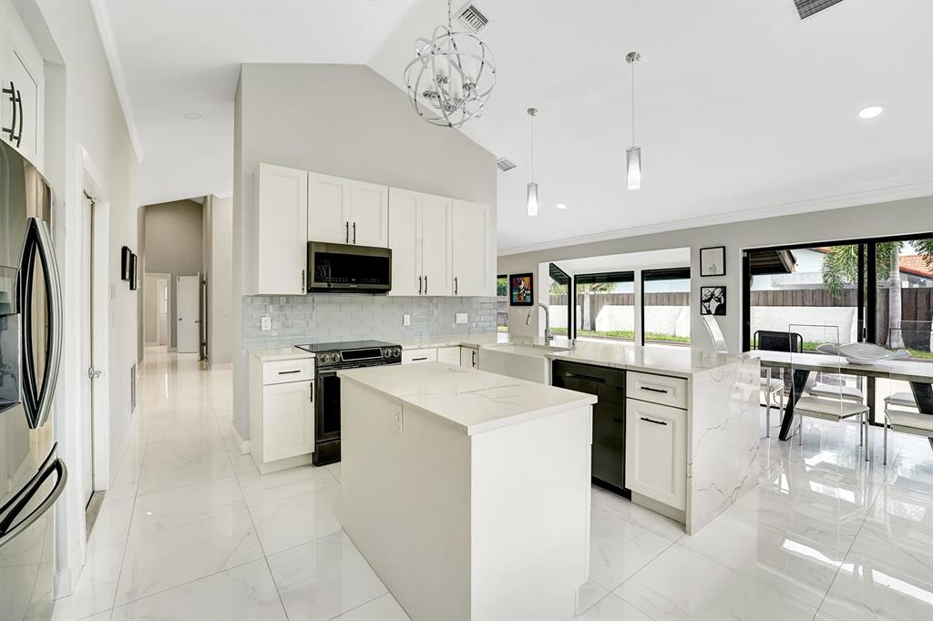 Stunning modern contemporary style home that will take your breath away! Every single detail of this home has been recently updated (complete interior renovation done in 2018 including roof, plumbing, electric, AC, impact windows, etc) with quality designer features including Infinity floating master bathroom vanities, LED mirrors, barn doors, top notch graphite appliances, quartz countertops, waterfall edge island with electric, and more! This home boast an attractive open concept floor plan with new marble flooring, brand new open kitchen, and with the perfect amount of natural light! This home is also sitting on a corner lot which provides you with an extremely private backyard that represents your own oasis.