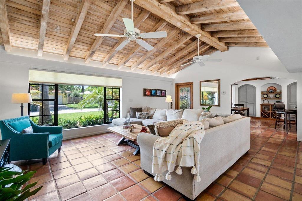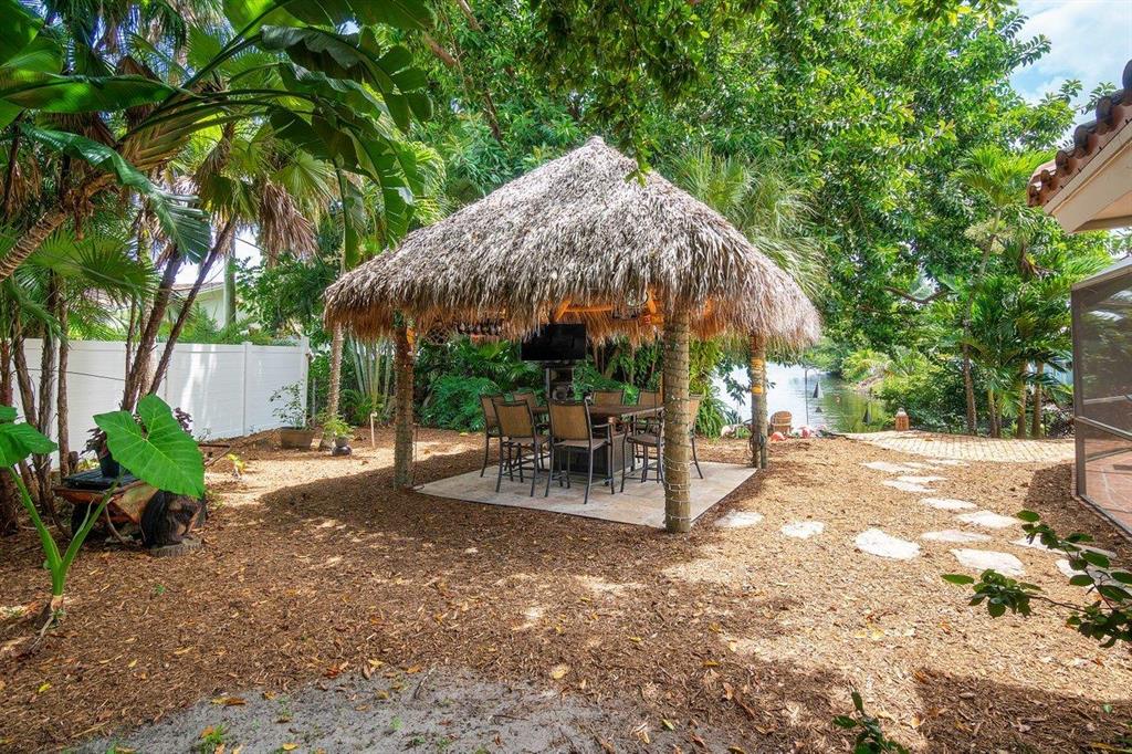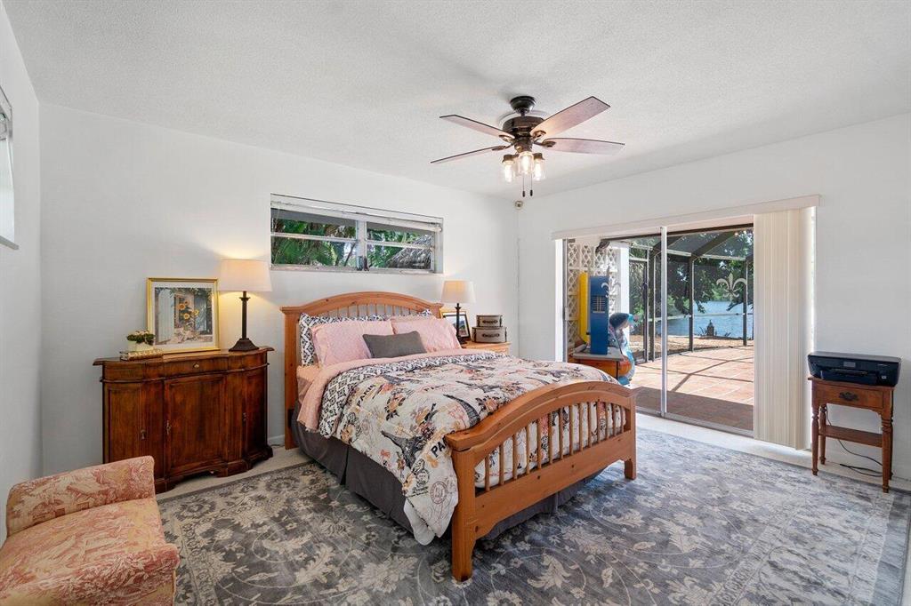 Extraordinary, upgraded, lakefront mini-estate in prime east Boca Raton location. This will make you smile - from the gracious approach, to the wow feeling coming in the front door, to the incredible outdoor living space, only surpassed by the amazing lake views from most rooms! The beamed cathedral ceilings and wall of sliding glass doors expand the spacious feeling of the home. L-shaped layout with all rooms opening to the incredible 1500 SF screened entertainment space, and pool (two cabana baths). Artistic touches throughout - refinished kitchen cabinetry, creative storage solutions, barn doors, 14x14 tiki hut (2020), custom built-ins for primary bedroom suite. Incredible 1/3-acre lot with big shed and room to expand! New roof 2019. AC 2014. Minutes to downtown and beach!