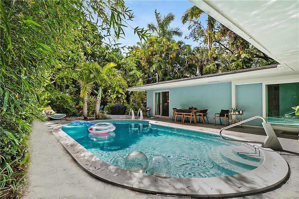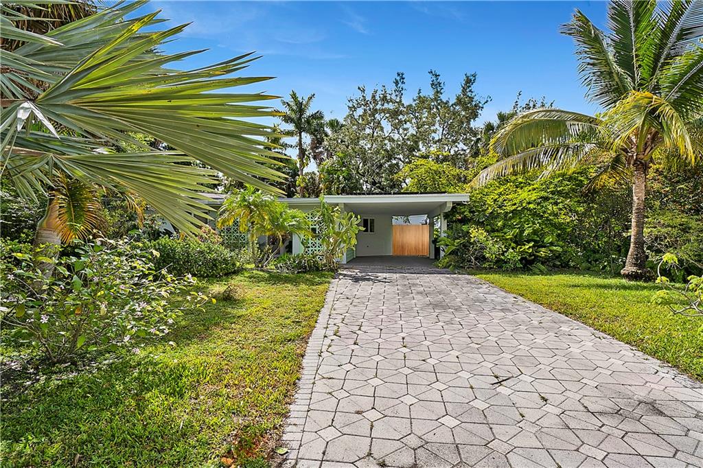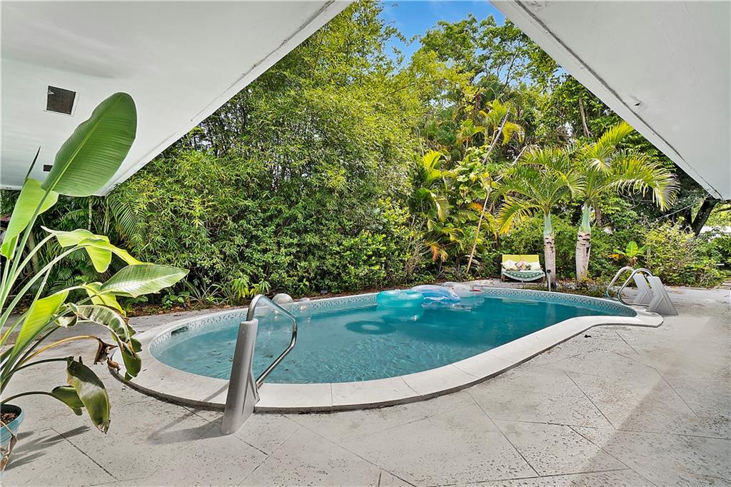 This spacious 3 bed, 2 bath, Mid-Century Modern house is located on a large lot which benefits from mature landscaping at the front and rear. There are two separate solar systems. One heats the 'lagoon style' salt water pool (recently re-plastered, retiled, with a new filter). The other powers the majority of the house. The landscaping includes lime, papaya, pineapple and guava trees. The house has been fitted with impact doors and windows. The kitchen has been fitted with maple cabinets, granite counters and stainless steel appliances. The large primary bedroom has a walk-in closet. A new roof was installed in July 2021. This split-plan house is set in a mini oasis. It's located East of I-95, close to Downtown, Ft Lauderdale airport and major highways. Offers due by 8/12/21 by 5pm.