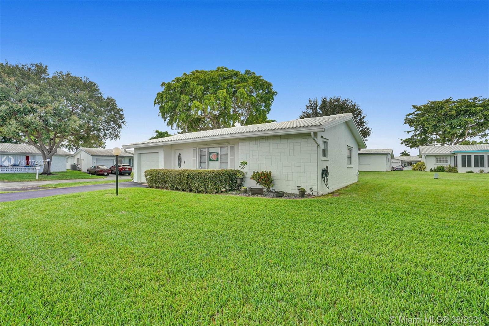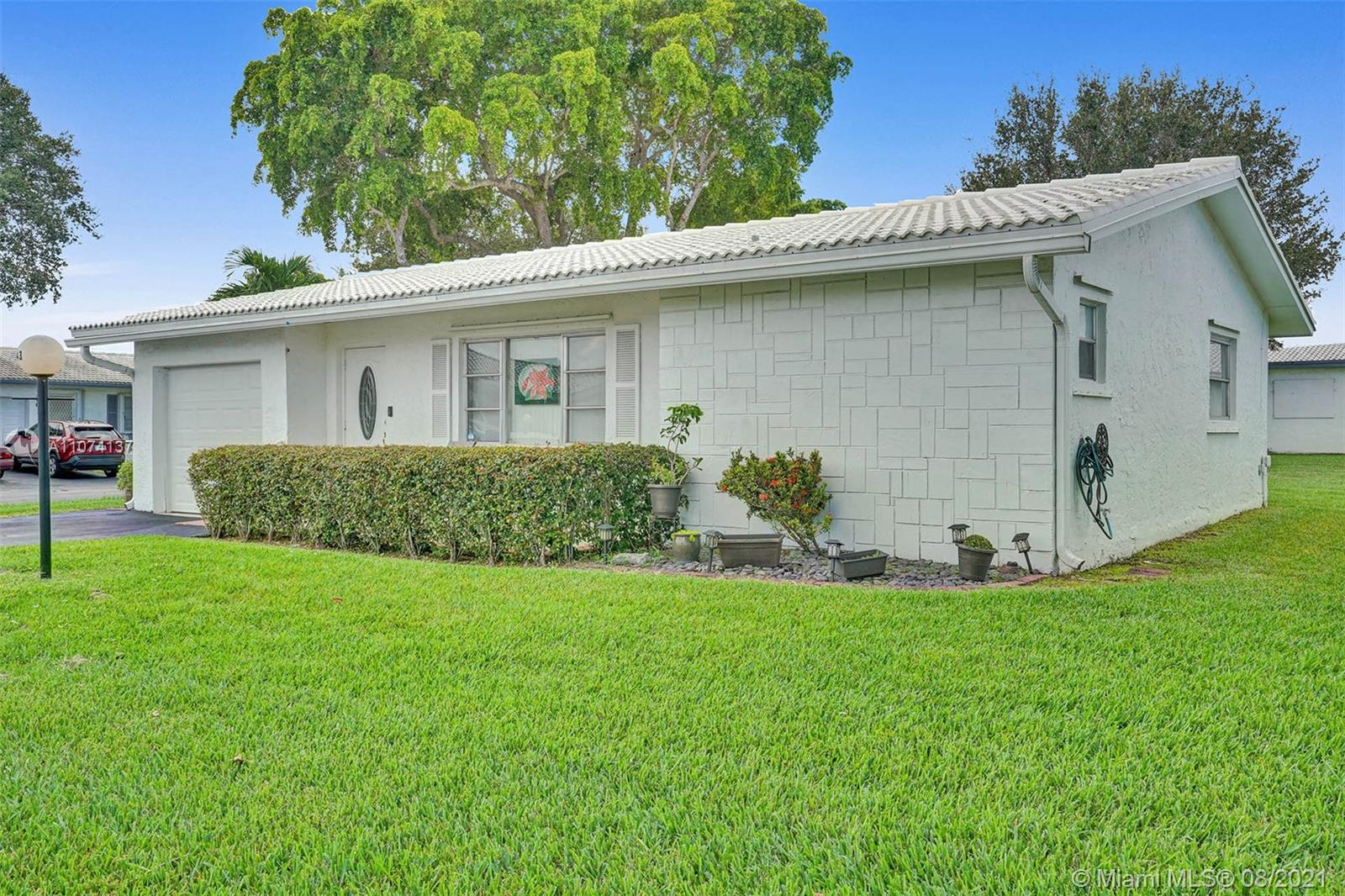 Welcome home to the desirable 55+ community of Lauderdale West in the heart of Plantation. Relax on the tranquil front patio or the screened back patio. The home features a corner lot, widened driveway, updated kitchen and bathrooms, tile throughout living area, walk in closets, and within walking distance to the club house. The community offers billiards, gym, sauna, card room, wood working shop, library, entertainment, 2 community pools, tennis, shuffle board, bocce ball and community shuttle bus. The association fee includes roof, exterior painting, lawn service, cable, internet, minor plumbing and electrical. Association requires 20% down.
