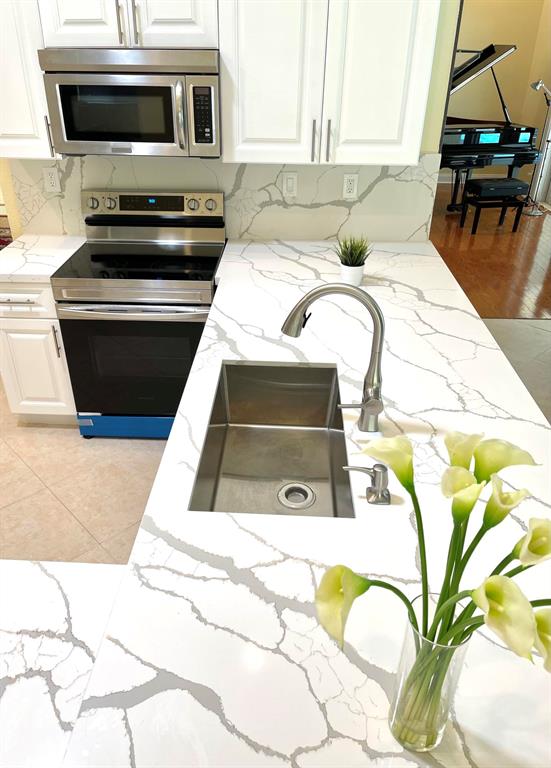 Bright, spacious and impeccably renovated 4 bedroom, 2.5 bath home in a highly desirable neighborhood. New roof with new skylights, New impact glass windows & doors throughout. New kitchen with quartz countertops, New stainless steel appliances, New painting interior & exterior, New vinyl floor in bedrooms and hallways. A large and bright family room for you to entertain guests by the fireplace, formal dining room, and a double French doors that lead to the beautiful pool on a lushly landscaped backyard. Low HOA Fee with a city park within the community. Easy access to the Town Center mall, I95, turnpike, fabulous beaches, downtown areas and top rated schools.