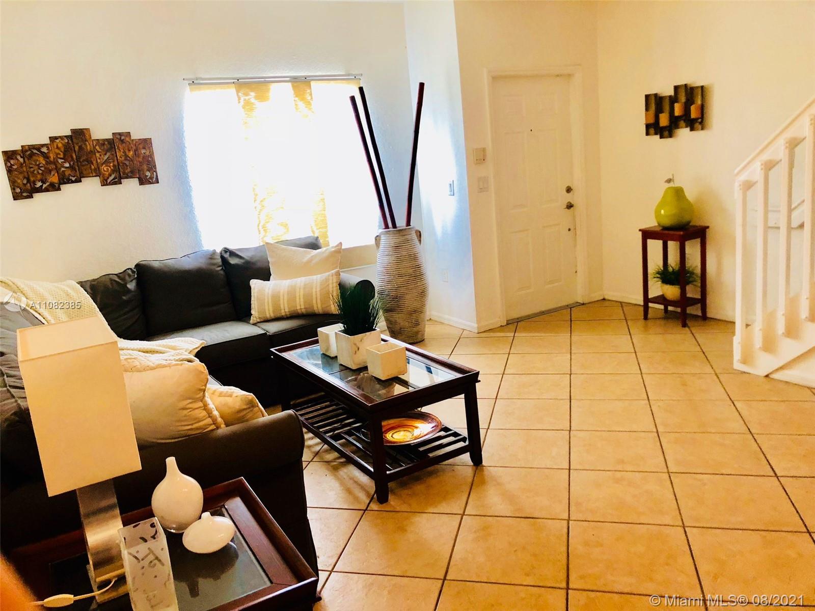 Beautiful Townhouse in Las Brisas at Doral . Bathrooms and kitchen remodeled. Perfect location. Great Schools nearby. 3 bedrooms 2.5 bathrooms . Brand new A/C and water heater. Gated community, security patrol. Amazing clubhouse with well maintained pool, jacuzzi, gym, tennis court and kids playground. Close to shopping center and Turnpike.