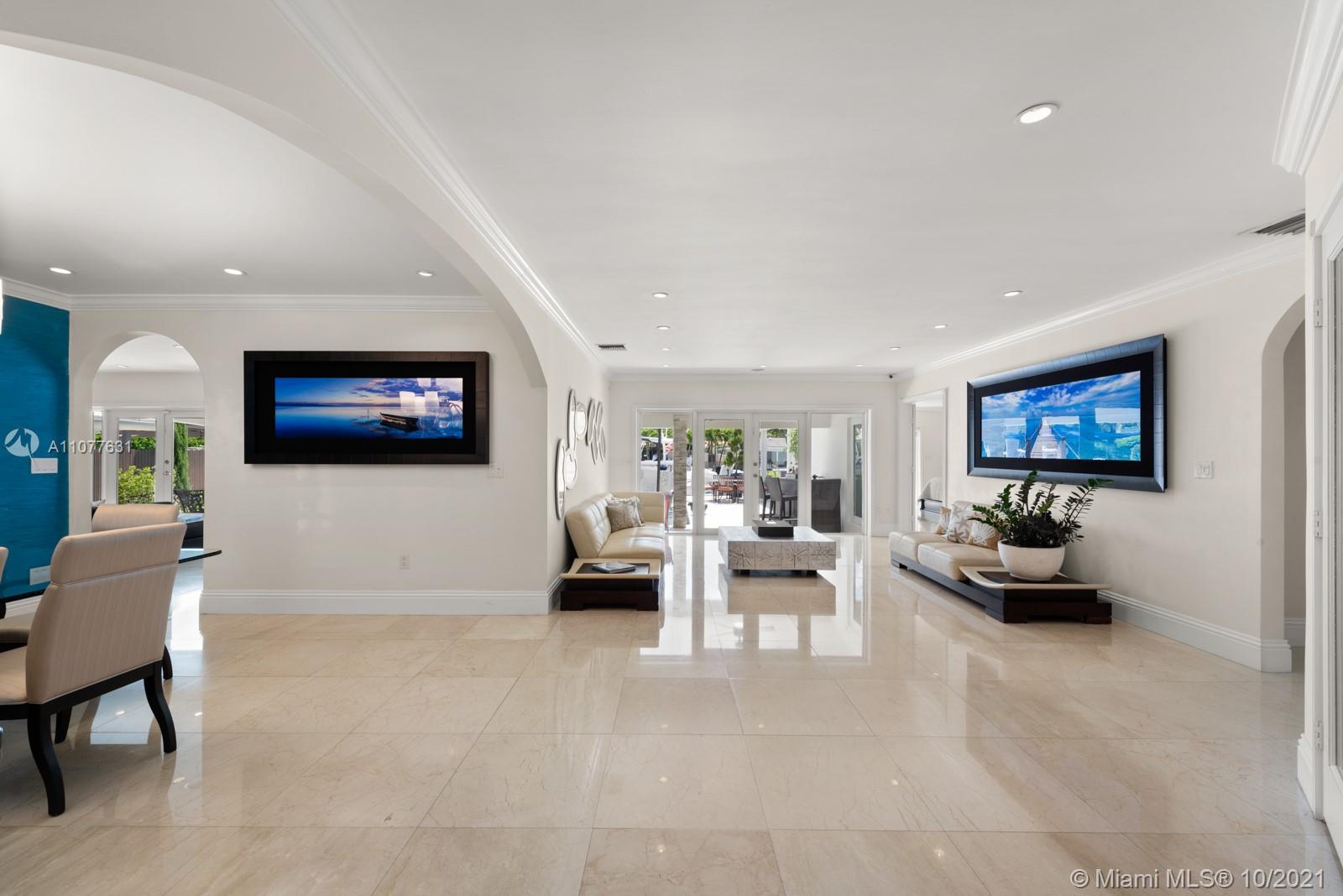 Contemporary waterfront GEM!! Totally renovated and ready to move In. On a 24/7 gated Island. Deep dockage W/80 FT of Seawall. Just minutes to Biscayne Bay and Ocean. This great house offers an open floor plan, bright rooms, sunny East exposure, custom main kitchen + premium full outdoor summer-kitchen, two car garage, gas generator, all new pool-patio deck, excellent dockage + boat lift. On a Cul-De-Sac, no traffic. Real Seller’s. Easy to show.