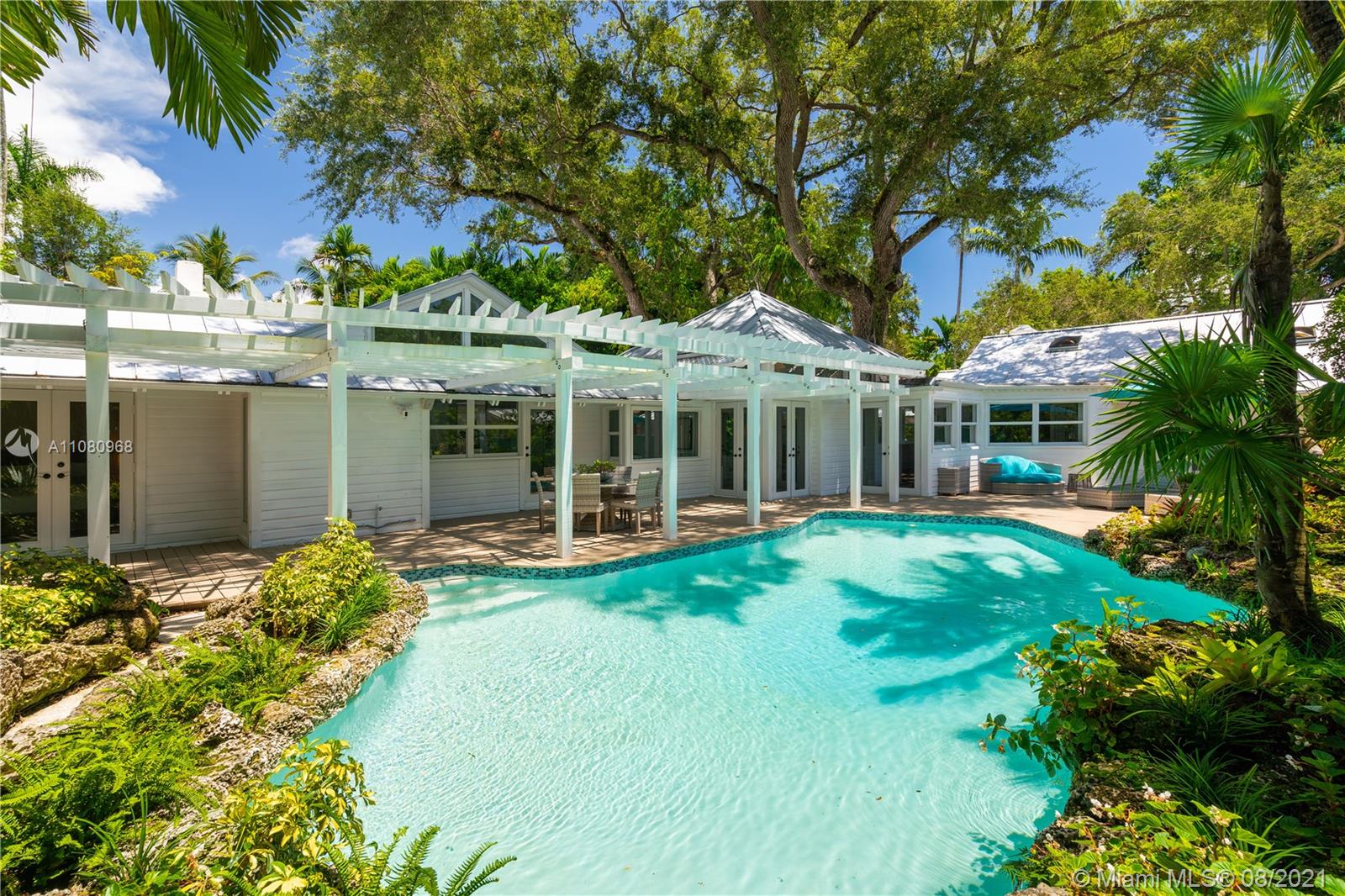 When dreaming what life could be like living in Coconut Grove, this magical home captures the imagination. Filled with charm and character, not to mention a most interesting history, 4250 Lennox is truly a classic. It sits proudly on a lush, 15,780' lot, tucked onto a beloved, private, winding road in the South Grove. Vaulted ceilings, wood floors, new metal roof, new impact windows, and new bathrooms will envelope you, as will the sun-drenched rooms. The Chefs eat-in kitchen w/Wolf & Subzero appliances overlook a sexy pool and coral rock gardens. An incredible family room and two home offices provide the necessary spaces for today’s homeowner. Porches and terraces beckon outdoor living. A Very Special Home.