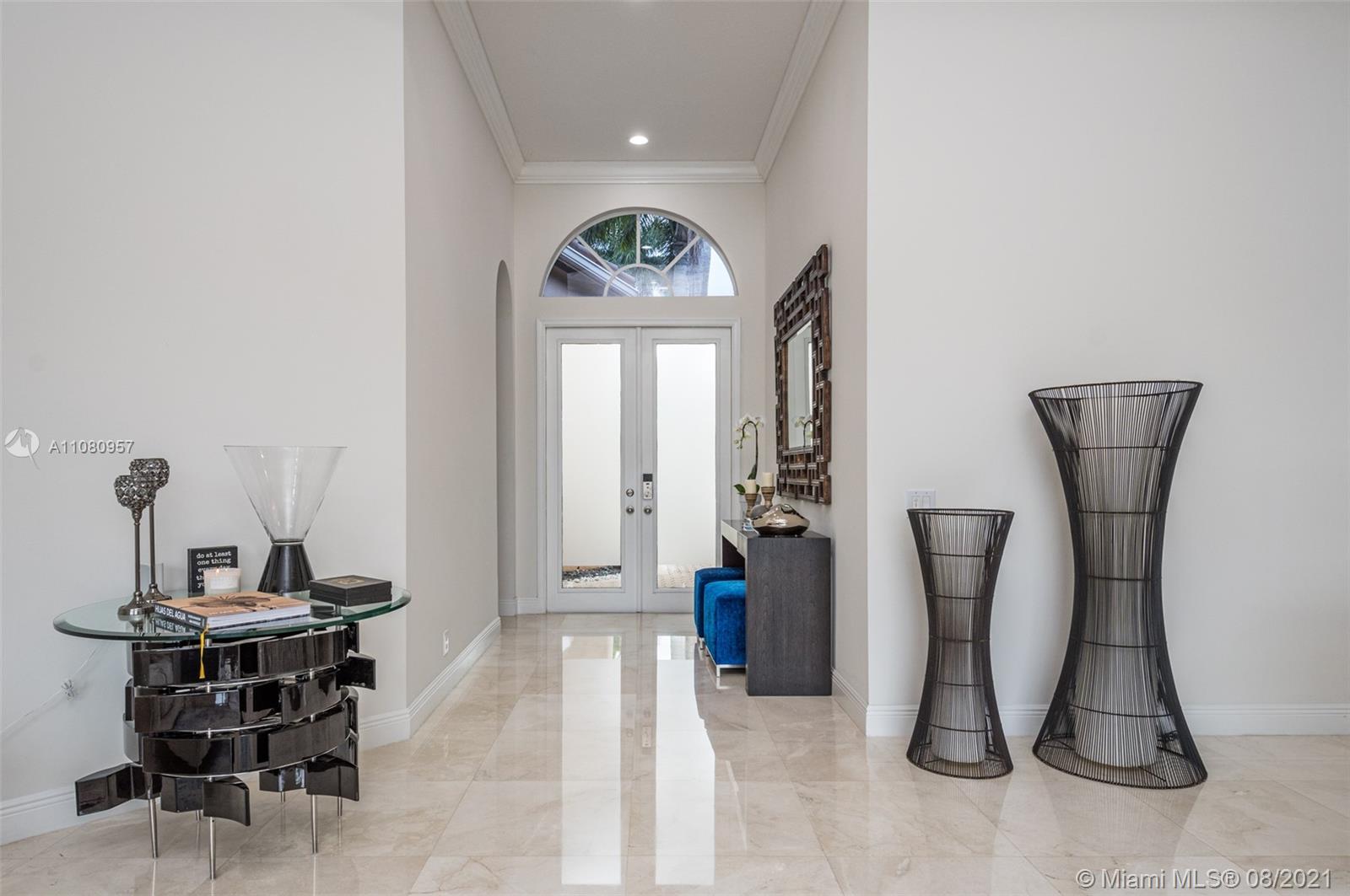 Elegant and bright one-story in exclusive Weston Hills Country Club. This amazing property boasts 5 bedrooms, 3 full baths, pool with waterfall and a spectacular Lake view. Gourmet off-white wood cabinets, granite countertop and SS appliances. Stunning 12' ceilings, marble flooring throughout the main areas and wood laminate in the bedrooms. Inviting oversize master suite opens to patio and includes two separate wall-in closets, marble bathroom with separate vanities and walk-in shower. New Accordion hurricane shutters, Garage Door, Washer/Dryer and Kitchen appliances. Hunters Point park includes: tot lot, full sized basketball court and soccer field.