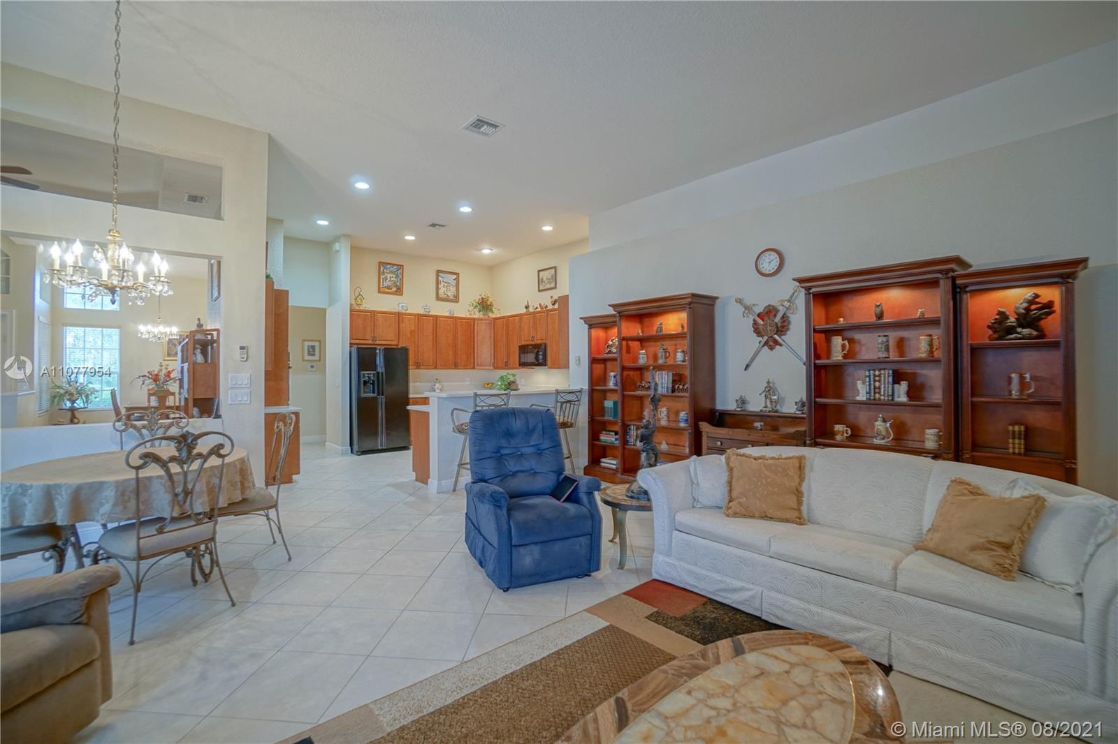 Enjoy the spectacular natural light in this gorgeous Miramar home featuring 5 bedrooms, 3 bathrooms, 3 car garage. Home features include; open floor plan, large open kitchen, breakfast nook. Huge screen enclosed patio makes for the perfect place for entertainment and relaxation with view of the lake. Motorized canopies. Large master suite with his and her walk-in closets and patio access. Large master bath, dual sinks, separate tub and shower. Split floor plan. 2 A/C Units. 5th Bedroom being used as office space. Laundry room with sink. Accordion shutters. Community clubhouse has many amenities including pool, tennis, basketball, kids club, full gym. A+ schools.