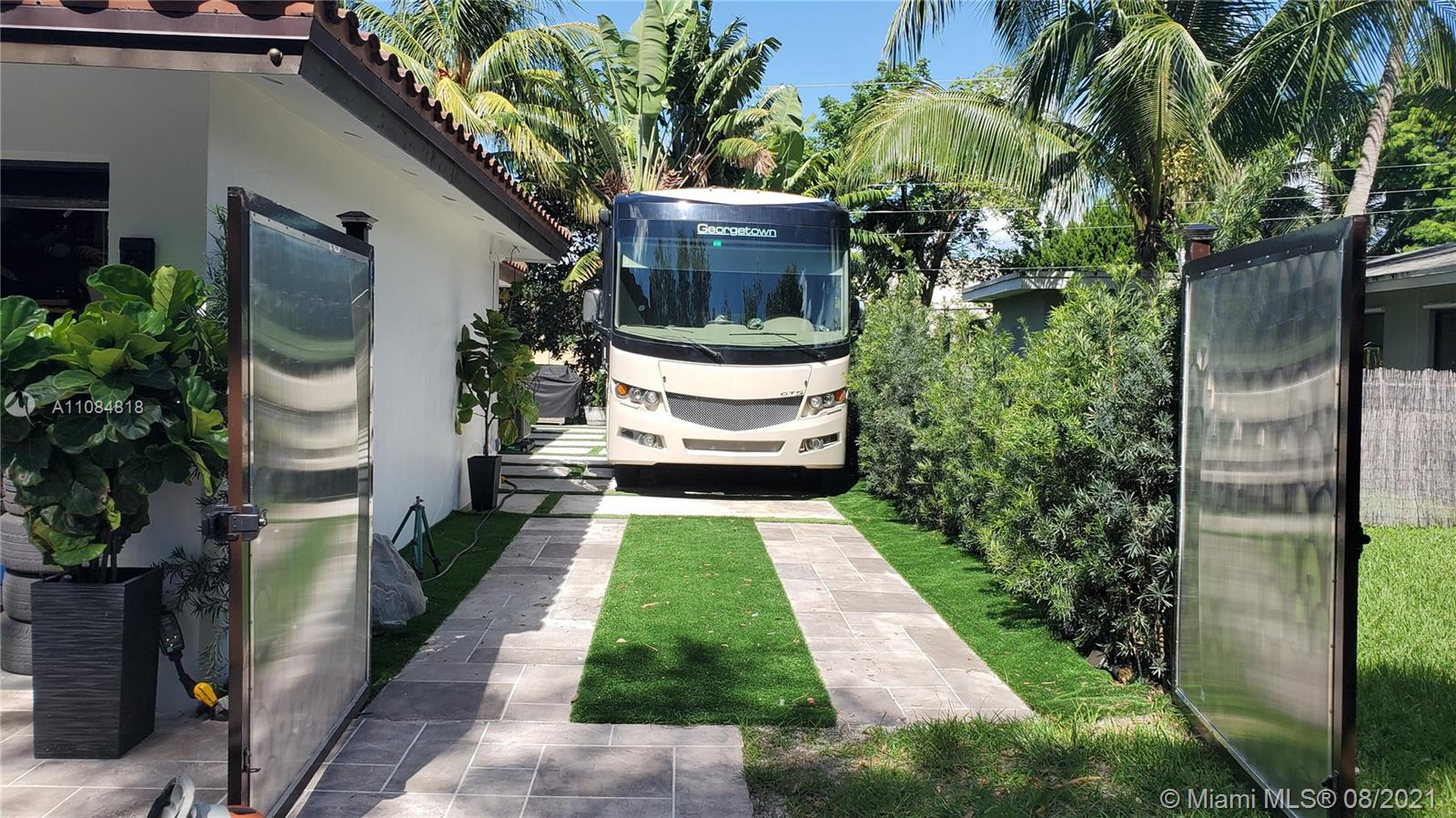 Welcome to your new home in Lawn Acres, a sleepy tree lined neighborhood in Hollywood. This property features lush landscaping, large driveway for multiple vehicles, gated parking for an RV or Boat up to 51 feet plus charging outlet for your e-vehicle, just bring your adapter. Extra utility room/shed in the rear along with plenty of shaded outdoor space for entertaining. Home includes water purification system, solar attic fan to help keep the home perfectly cool, spacious garage, impact windows & doors. The spacious kitchen includes modern appliances. Large windows throughout the home fill the space with natural light. Close proximity to Florida's Turnpike with access to Miami, Fort Lauderdale International, Cruise port, Local Beaches and the famous Hardrock Guitar Hotel.