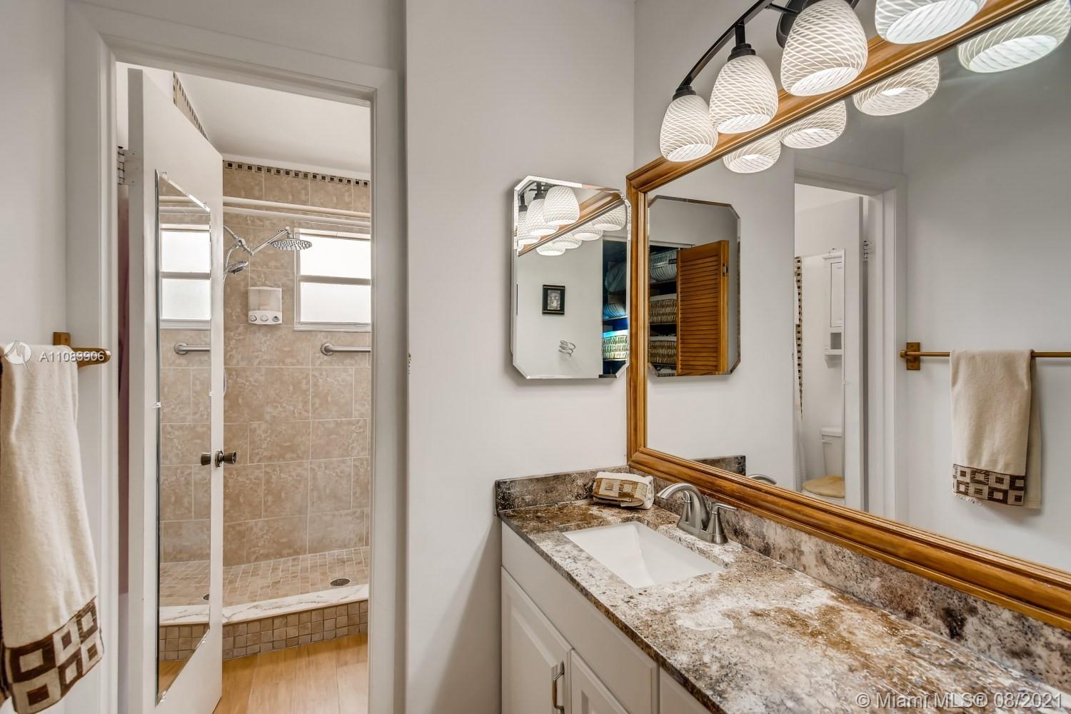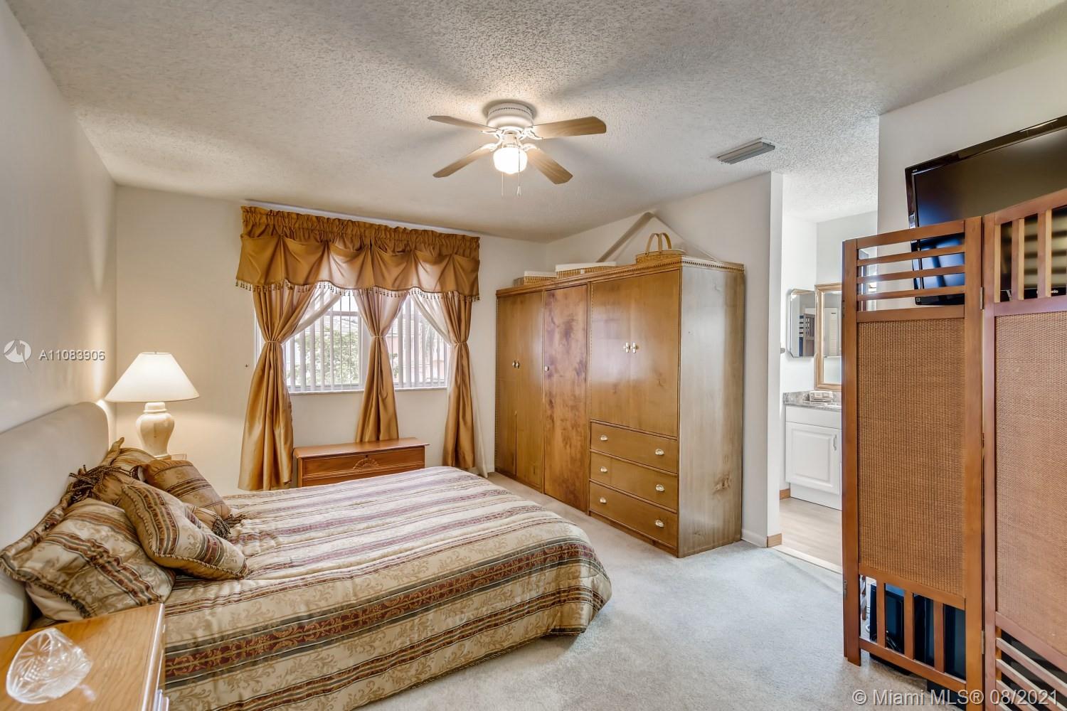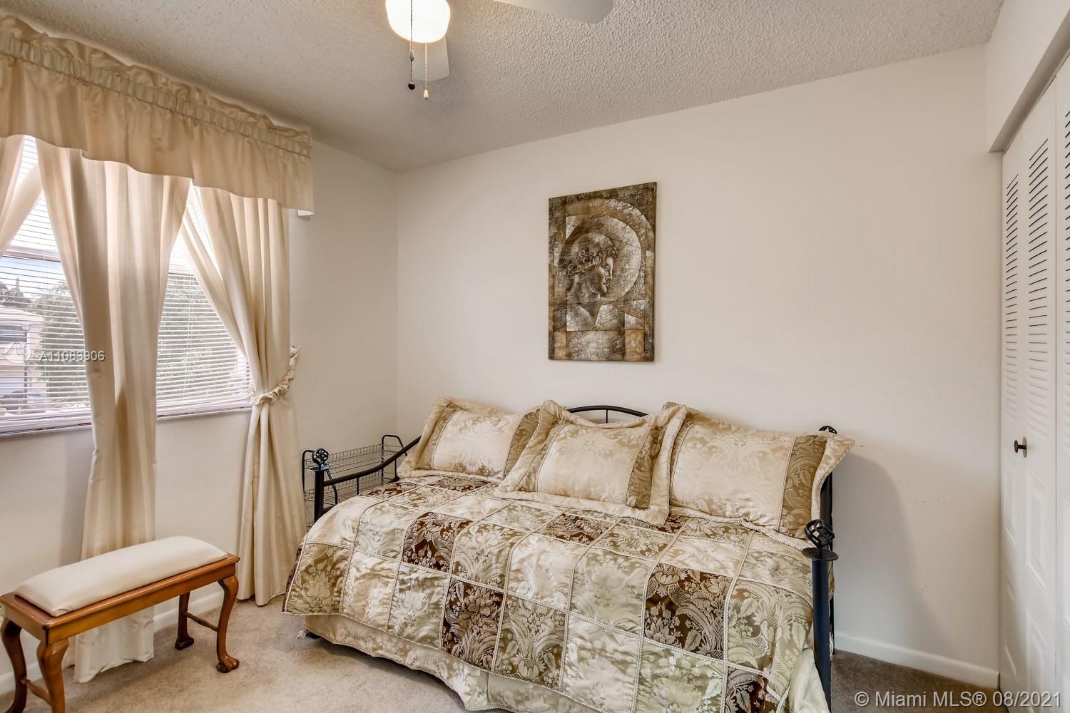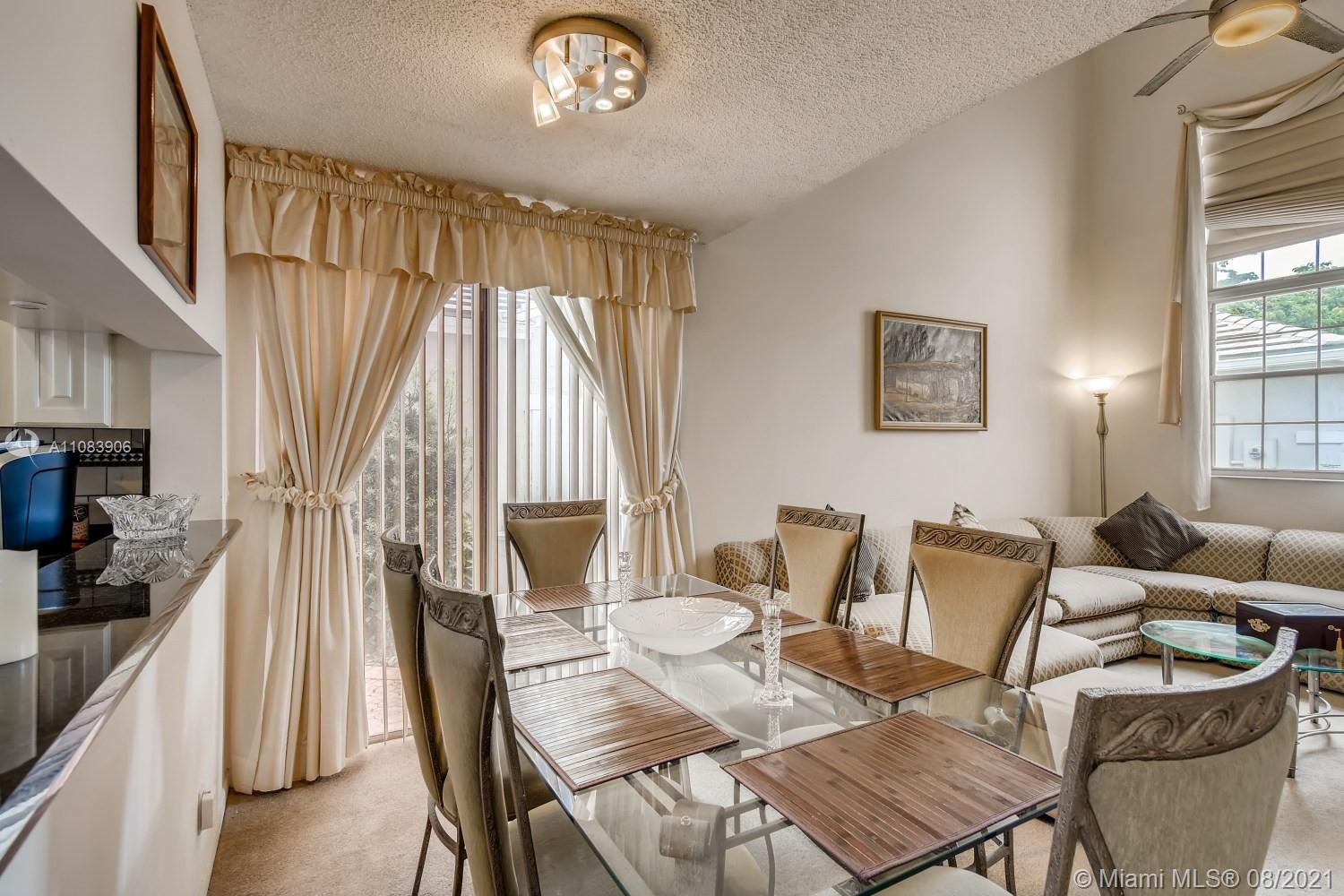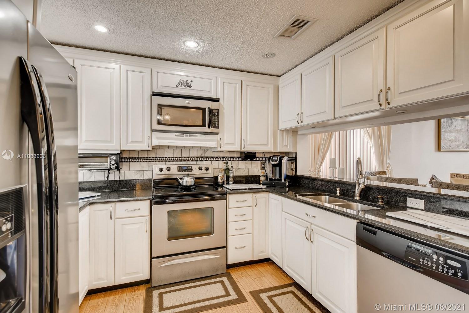 Fantastic 3 bd/ 2.5 ba two-story home with stainless steel appliances, a peninsula bar, granite countertops and a side dining nook with built-in cabinetry. A side living area stretches beyond the kitchen and runs across the rear of the home. bedrooms on the second level — the primary has plush carpeting, custom built armoire, ensuite bathroom with tiled standing shower, granite vanity and massive walk-in closet with custom shelving. The secondary bedrooms are also carpeted. Paradise waits in your own backyard; find yourself amongst the palms and lush, tropical vegetation on the paver patio as you entertain or enjoy the solitude — a surrounding fence ensures your privacy. Roof 2012, AC 2020, Water Heater 2003. HAS HOA.