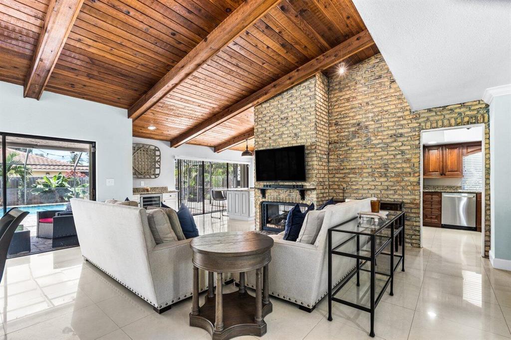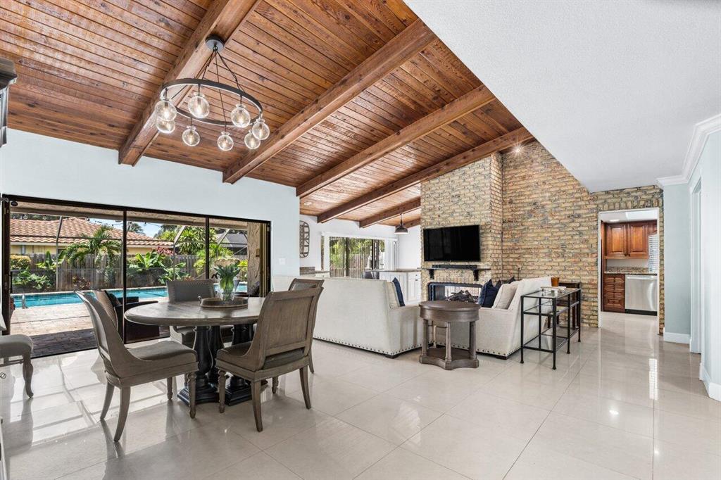 BEAUTIFUL! Incredibly Charming updated POOL home in popular Maplewood! Nestled perfectly on an oversized corner lot, featuring 3 Bdrms PLUS Flex Room w- closet, 2 Ba and Bonus Room. This Former Builders Model has a European ambience with Stunning Wood Beamed Ceilings, Cozy Brick Fireplace and Beautiful Glazed Porcelain tile throughout main living area. No expense has been spared with upgrades to include NEW Bathrooms, New Pergo Wood flooring in Bedrooms, Beautiful New Custom Island and Built in Bar. New A/C 2021, Newer Hot Water Heater, Gourmet Kitchen with Granite C-tops, Wood Cabinetry and SS Appliances. Step outside and enjoy your Custom Pool with New coping and motor surrounded by Beautiful New Cobblestone pavers and walkways. Offering a private fully fenced lot, lushly landscaped !