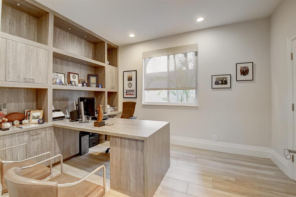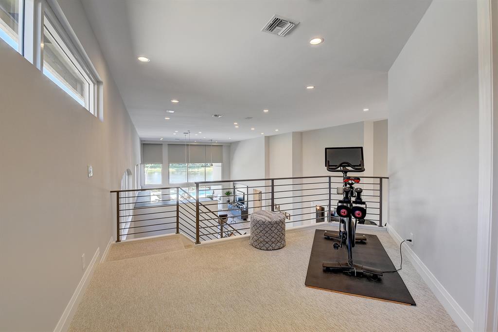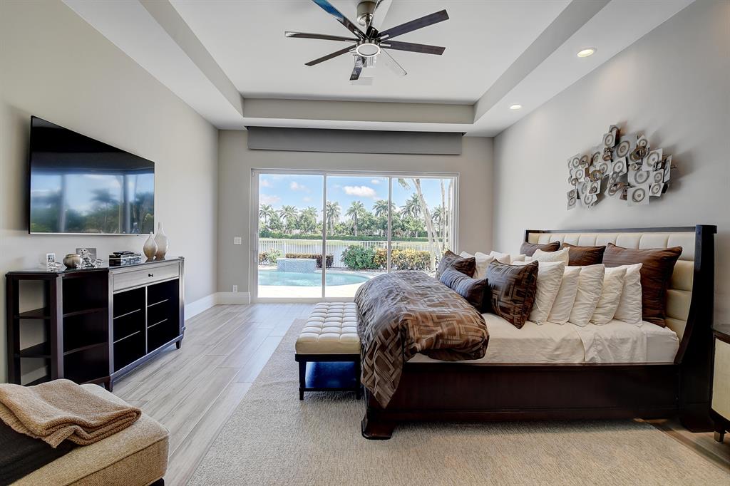Tranquil lake vistas & upgraded to the nines, this 2-story home of 4 bedrooms plus an office & 4 baths is filled with sunlight. Features include contemporary front doors; volume ceilings with LED lighting; 9'' X 48''wood grain porcelain tile & neutral carpeting; flat wall & ceiling finish; a tastefully designed gourmet kitchen with taupe high-gloss & tigerwood cabinetry, stainless steel appliances, quartzite counters, glass tile backsplash & elegant pendants; & a practically designed built-in office. The Living Room offers an inviting wet bar with ice maker & freezer drawers. The Master Suite offers beautiful lake views, custom closets, ceiling fan & shades & a spacious Master Bath with 3 vanities, free-standing aromatherapy tub, large shower with a bench & multiple heads.