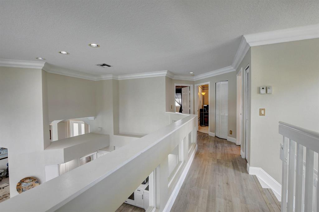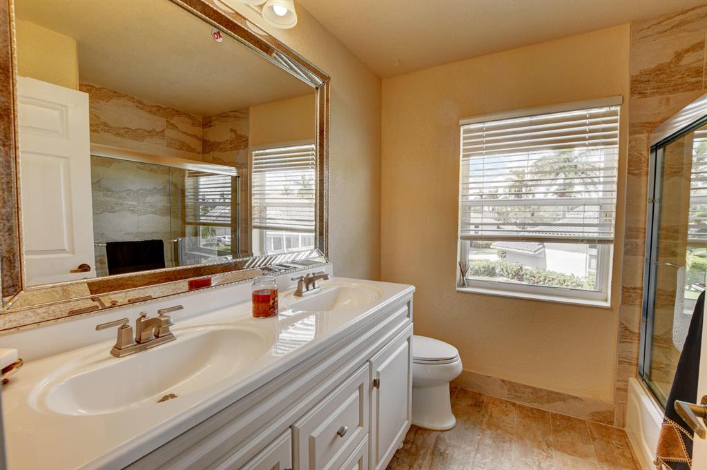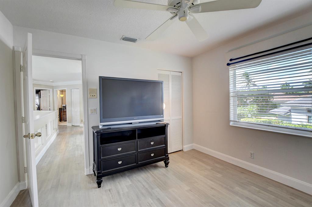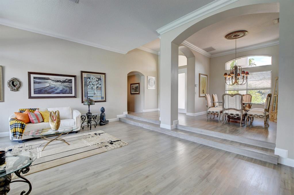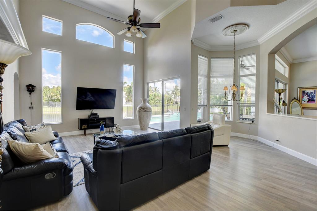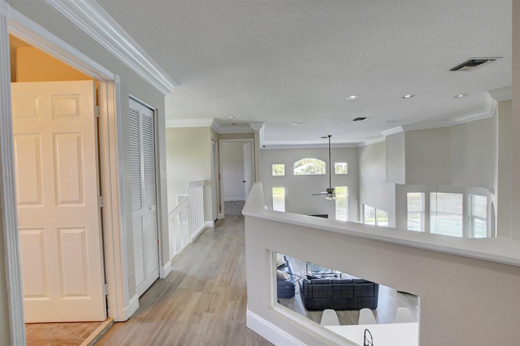 Updated Palm Beacher model located on a premier lot within walking distance to the club house. Come enjoy this lake front property with eastern exposure allowing for beautiful sunrise views. New roof with a 12 year transferable warranty completed in June 2021. Exterior of the house painted in June 2021 with a 7 year transferable warranty. First floor master bedroom with spa like bathroom featuring a jacuzzi tub and separate walk-in shower. One additional bedroom on main floor, with 3 more bedrooms upstairs. All bathrooms renovated. Home features a whole house water purification / filtration system. 20 foot ceilings in main living area of the home, tray ceilings in master bedroom, kitchen filled with custom pull-out drawers.
