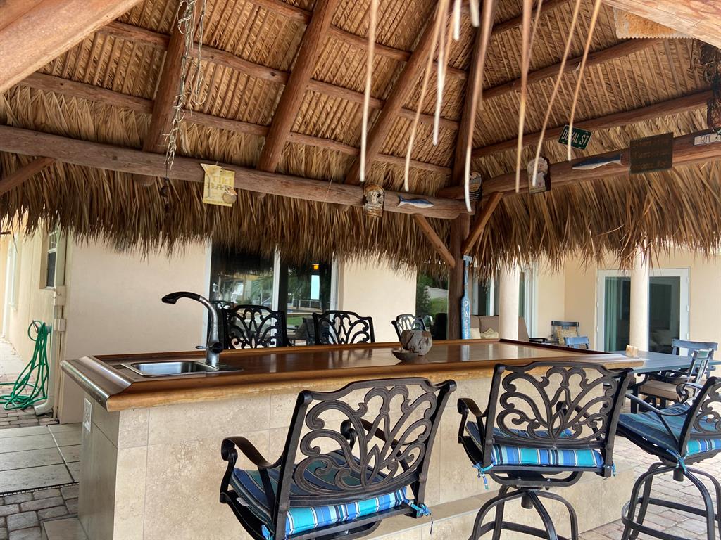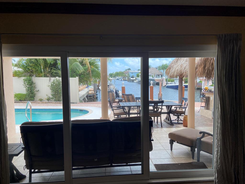 NEWLY LISTED Renovated waterfront property with long canal views with ocean access. This beautifully landscaped 4/3 has a pool w/ spa, tiki bar with electric and water, covered rear patio with a large area for entertaining. New dock with 10,000 lb boat lift. Circular driveway for all of your guests. Home comes fully furnished with a remodeled kitchen and baths. Bamboo flooring in the bedrooms. All windows are impact. Tile roof 10 years old, flat roof 4 years old. A/C 5 years old. Gas service for the stove, dryer, tankless water heater and pool heater. 5 minutes to the beach and easy access to the highway. Close to dining, shopping and entertainment. Send your offer before its gone!!