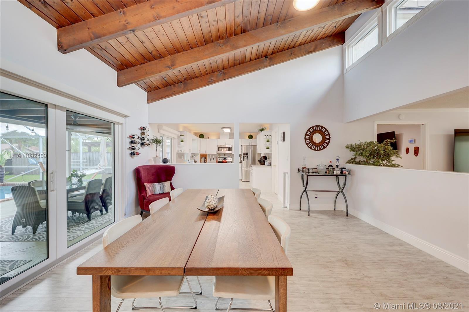 Great opportunity to own this gorgeous 4 bed/2 bath home that has been partially remodeled and well maintained. The home features a foyer entrance, vaulted ceiling, eat-in kitchen, dining room, and living room area. Updates include impact windows and doors, a new AC unit, hurricane-resistant windows, stainless steel appliances in the kitchen with a small bar fridge, a newer washer and dryer, a built-in security system with cameras, and a new saltwater pool and pool heater installed in 2020. Master suite boasts walking closet, marble & granite in bathroom. The fenced backyard, with a screened-in patio, large pool, magnificent tree, and canal views is perfectly set up for entertaining family & friends. Minutes from shopping, restaurants and great schools. No HOA.