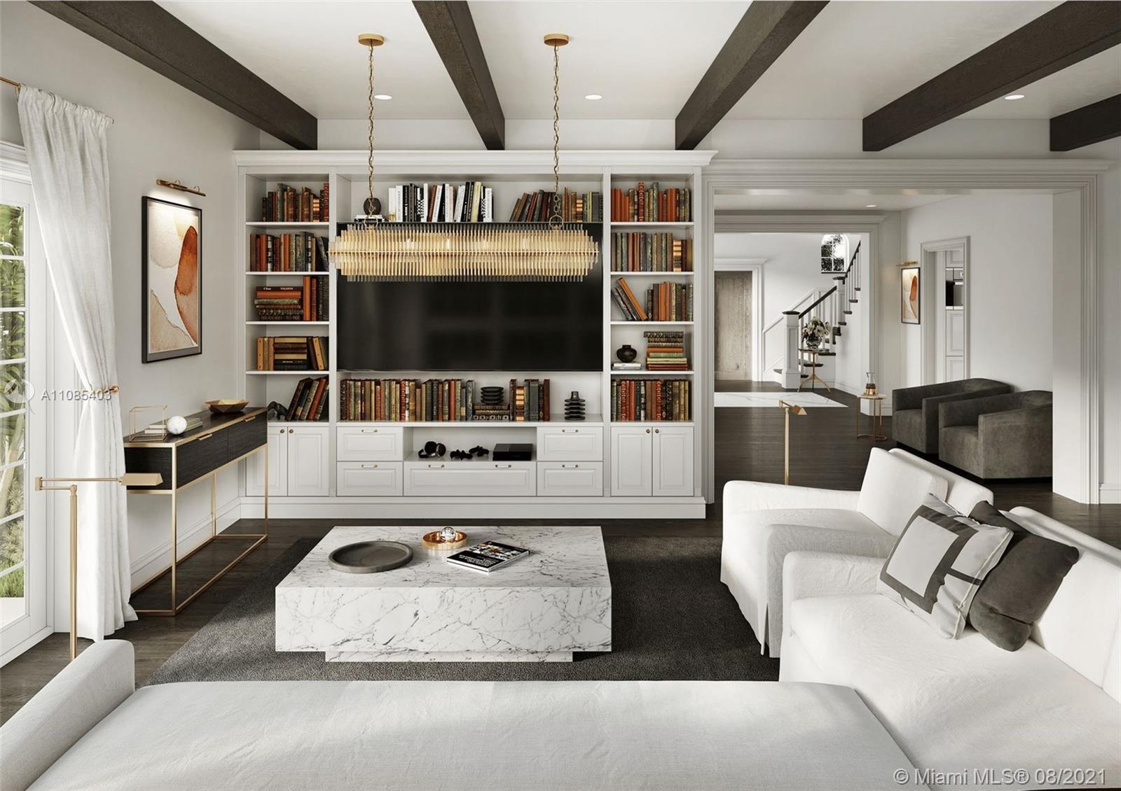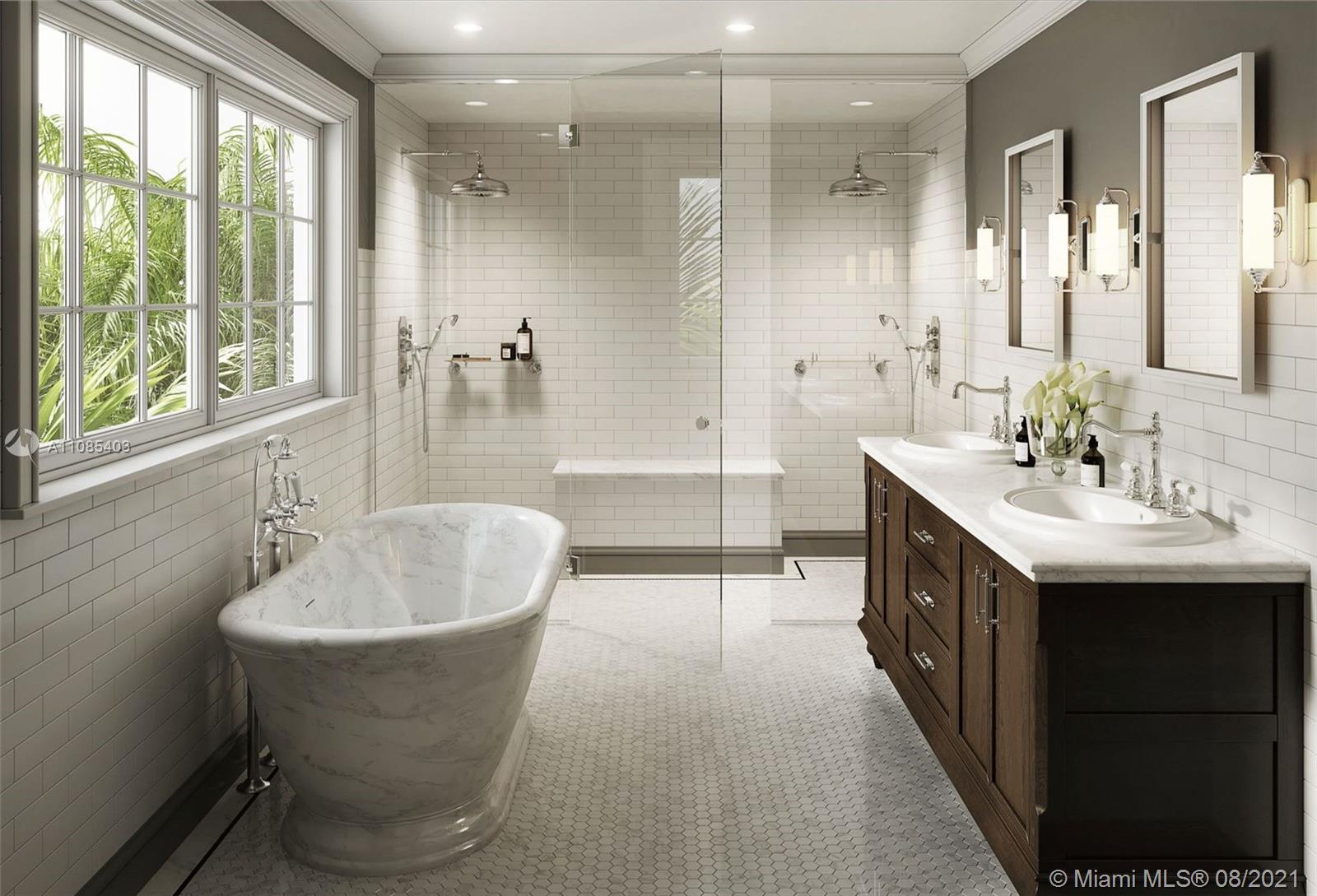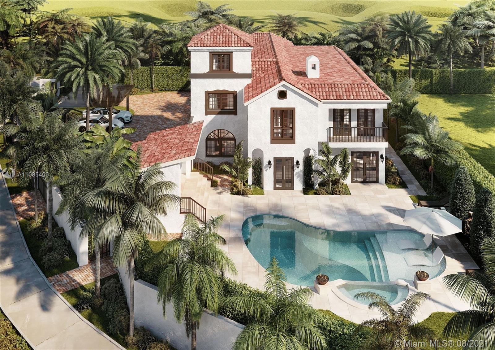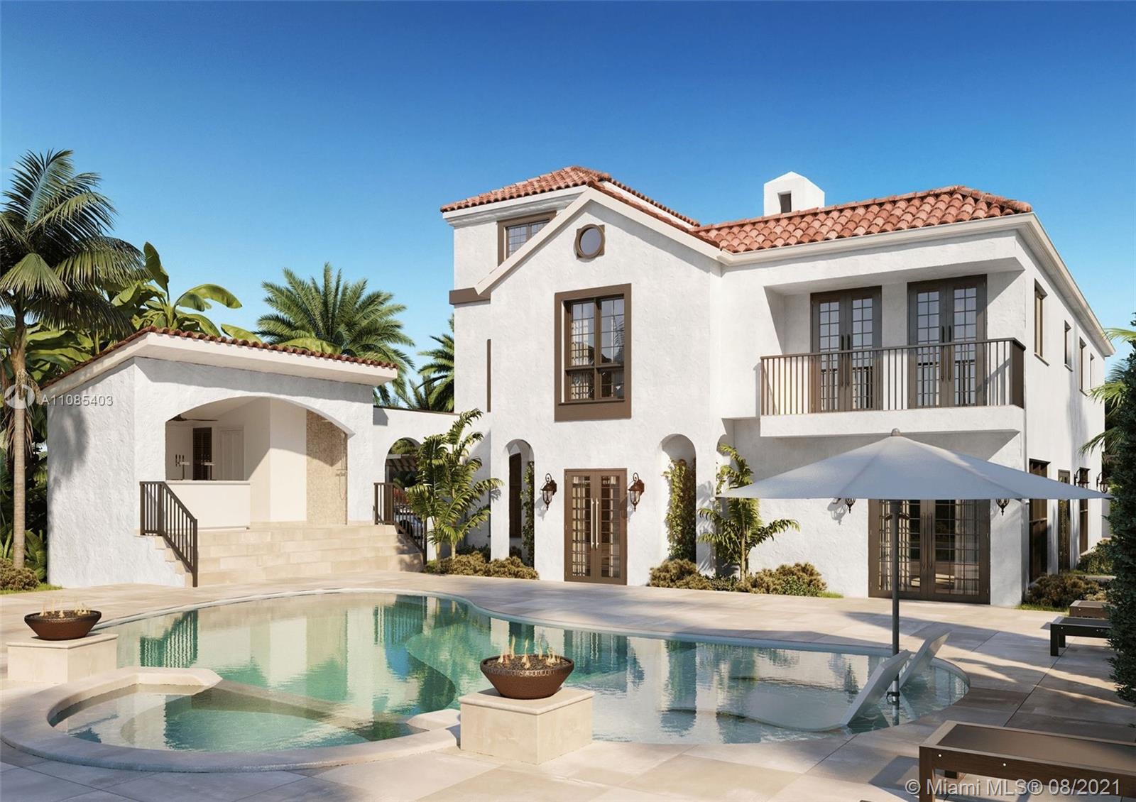 New, 5,000 sq.ft 5 Bed 6.5 Bath. Situated on the grandest lot in Mid-Beach, this 3-story home was originally built in 1925 by Carl Fisher, who selected its 12,600 pie-shaped parcel for its unique location; directly on the Miami Beach Golf Course and overlooking Par-3 Park. This contemporary Mediterranean consists of almost entirely new construction while preserving the prominent façade and character of the original home. Ideal layout of 4 beds up, with en-suite baths. Expansive master suite enjoys golf course & skyline views. A huge great room opens to pool area & cabana. Formal paneled study, chef’s kitchen, & separate guest suite tucked away complete the main level. Large semi-circular driveway + 1 car garage provide for excellent parking. Mid 2022 completion & chance to pick finishes.