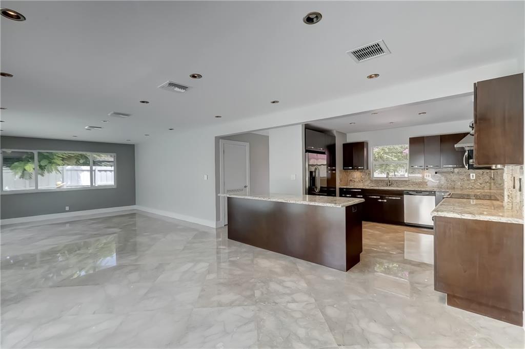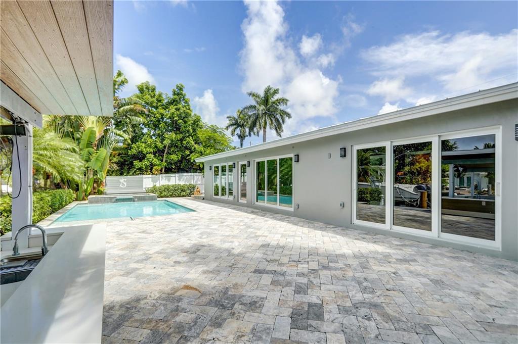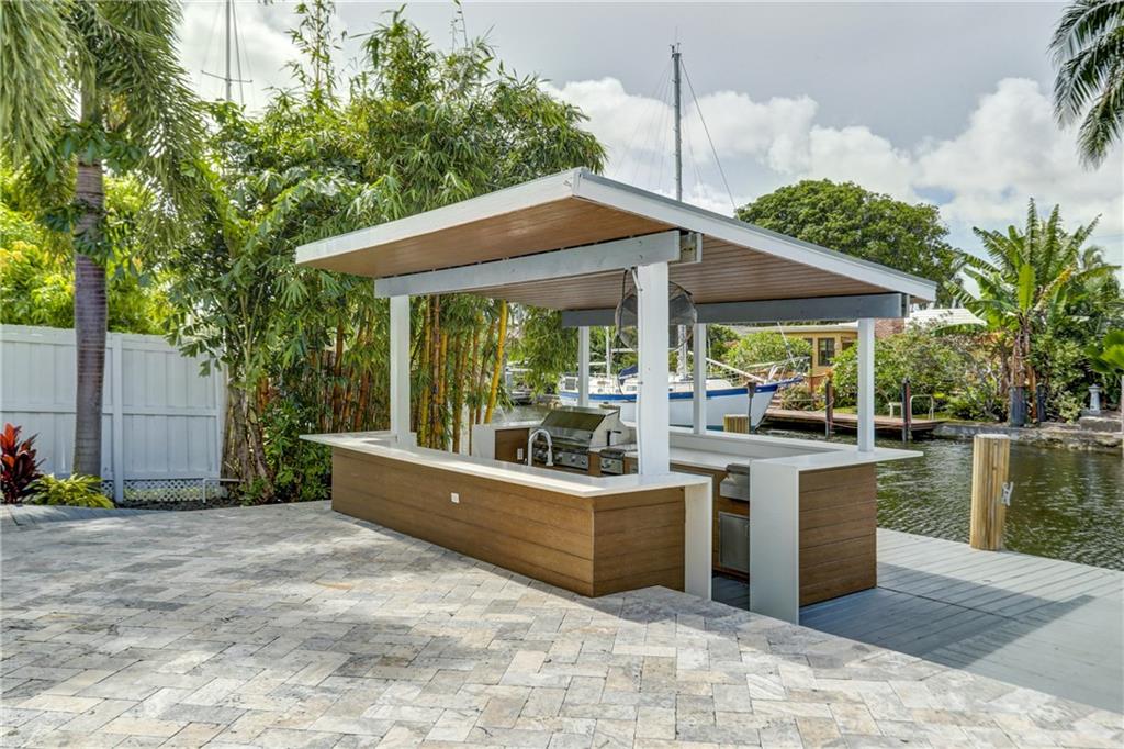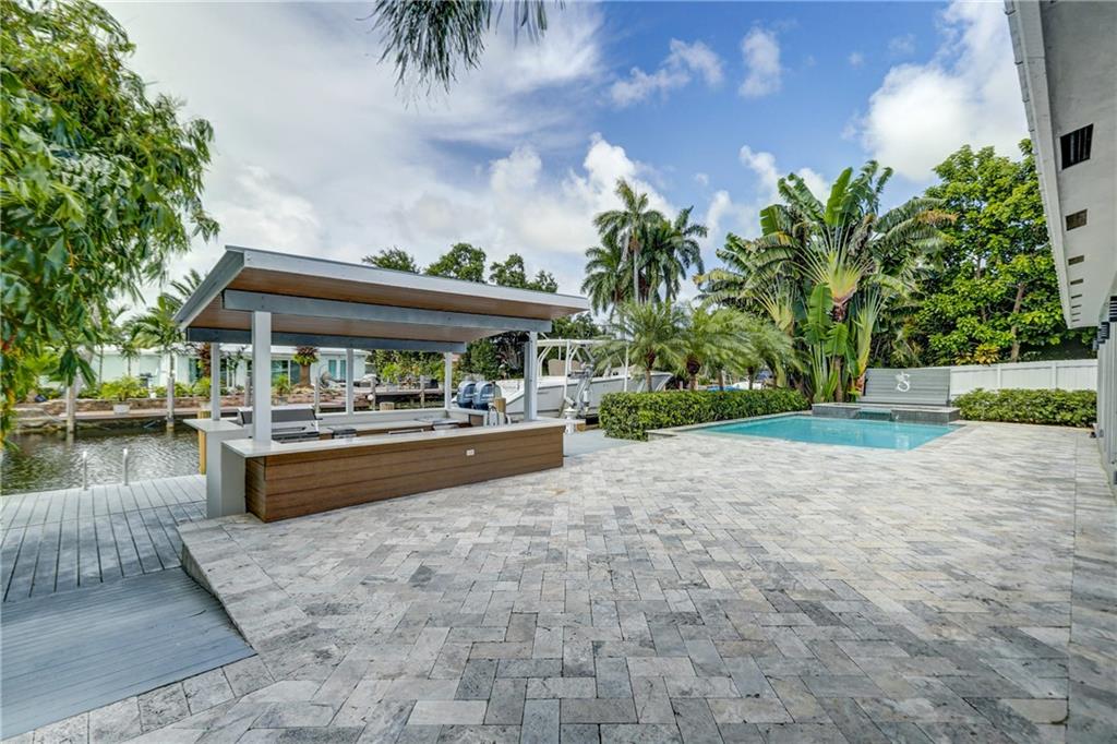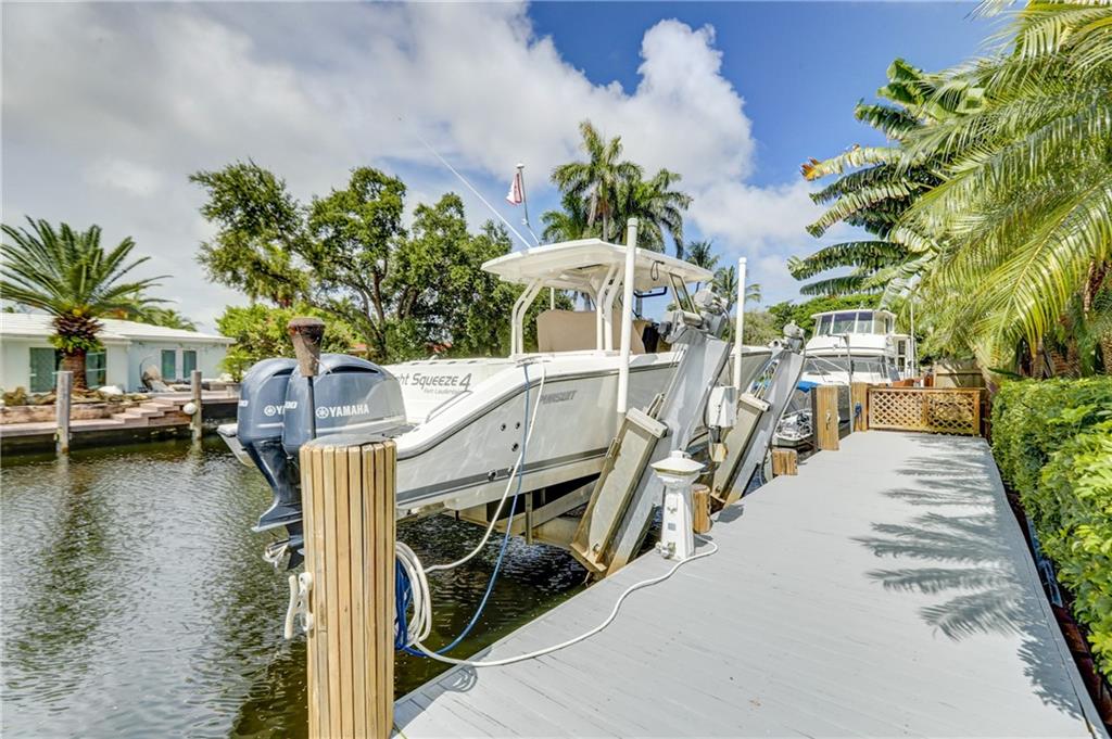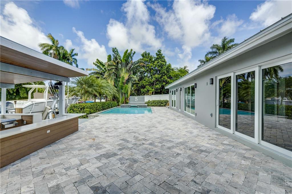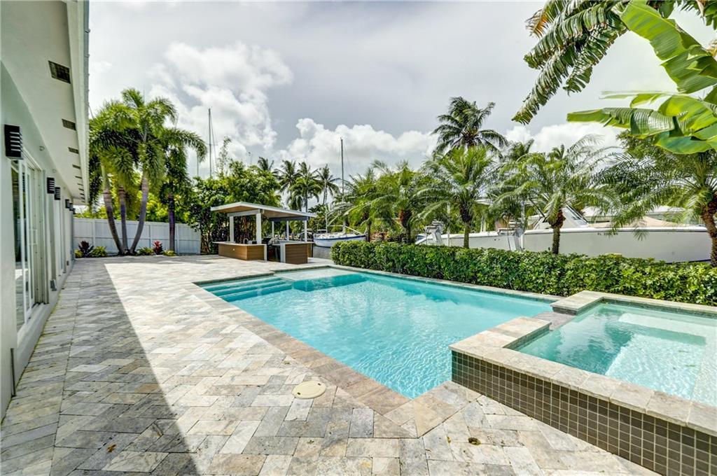 Located in sought after Citrus Isles this newly renovated home features 75' of deep waterfrontage and accessible dock with unrestricted ocean access. A 17K# remote controlled Neptune boat lift fitted w/ 30AMP power pedestal and fresh water washdown is ideal for cruising through the Venice of America. Surrounding yard features newly installed landscaping with decorative Mexican beach pebble and mature bonsai Bougainvillea. Saltwater gas heated pool with elevated spa featuring overflow waterfall. Marine grade, composite quartz and stainless steel covered outdoor kitchen. Open format all granite kitchen features a floating island, stainless steel appliances and oversized sink. Newly constructed master suite features double frosted glass French privacy entry doors, walk-in closet.