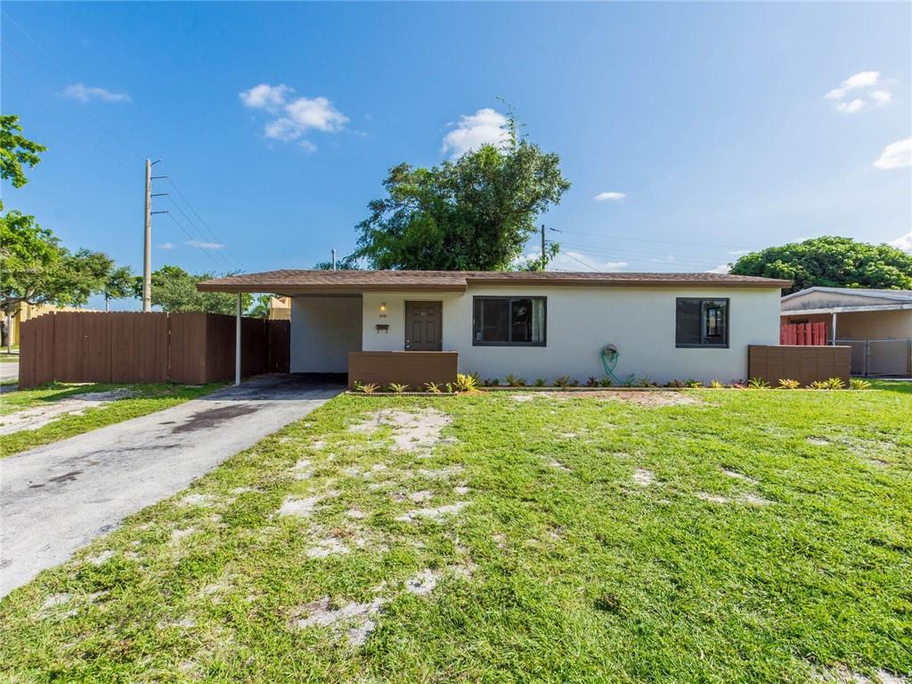 This 2/1 open concept home includes **PGT IMPACT windows**, neutral tile, updated kitchen, newer AC and hot water heater, brand new flooring in bedrooms, fresh paint inside and out, and a large covered patio on an oversized, fully-fenced corner lot. Great location! Minutes from Hard Rock hotel and casino, convenience shopping, dining and highways. Great investment! NO HOA.