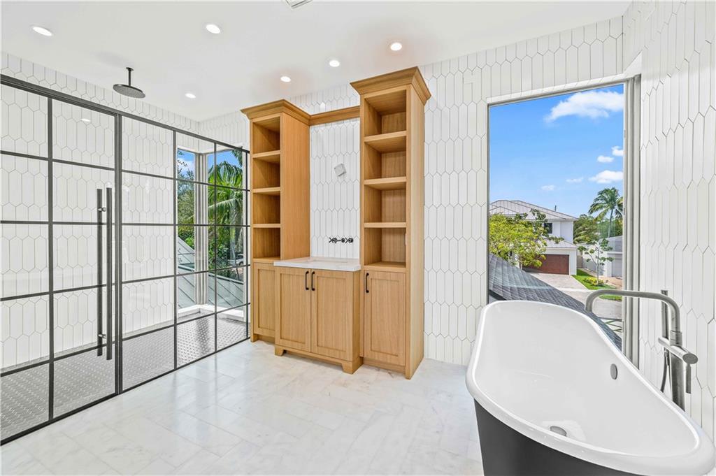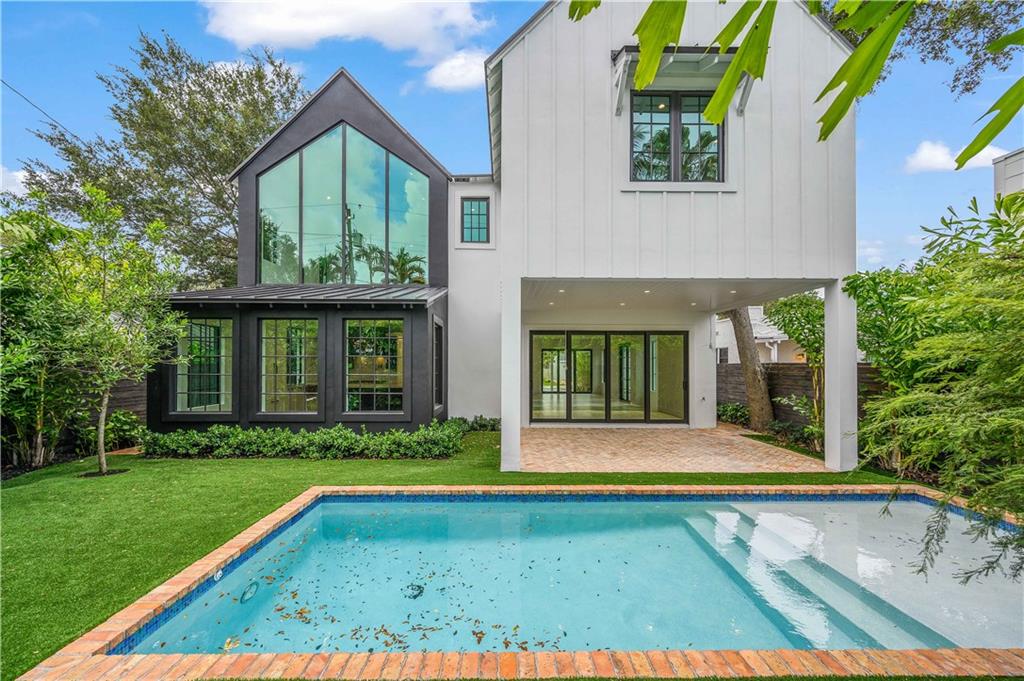 DESIGN MATTERS - Contemporary 5BR/5.5BA Farm House. A unique blend of modern and classic elements with finishes that include custom mill and tilework, hardwoods, quartz and marbles. Walls of windows and doors enhance the volume/vaulted ceilings throughout. The floor plan flows seamlessly from Great room to kitchen to the covered terrace. A 1st floor bedroom suite is ideal for guests or den. The primary suite boasts cathedral ceilings enhanced by a dramatic floor to ceiling arched window. There are two spacious walk-in closets and a bath that rivals any spa. three additional bedroom suites plus a laundry complete the second floor. The well landscaped, fenced yard has a pool with sun ledge. [Information is from 3rd party sources including BCPA and is believed accurate but not warranted].